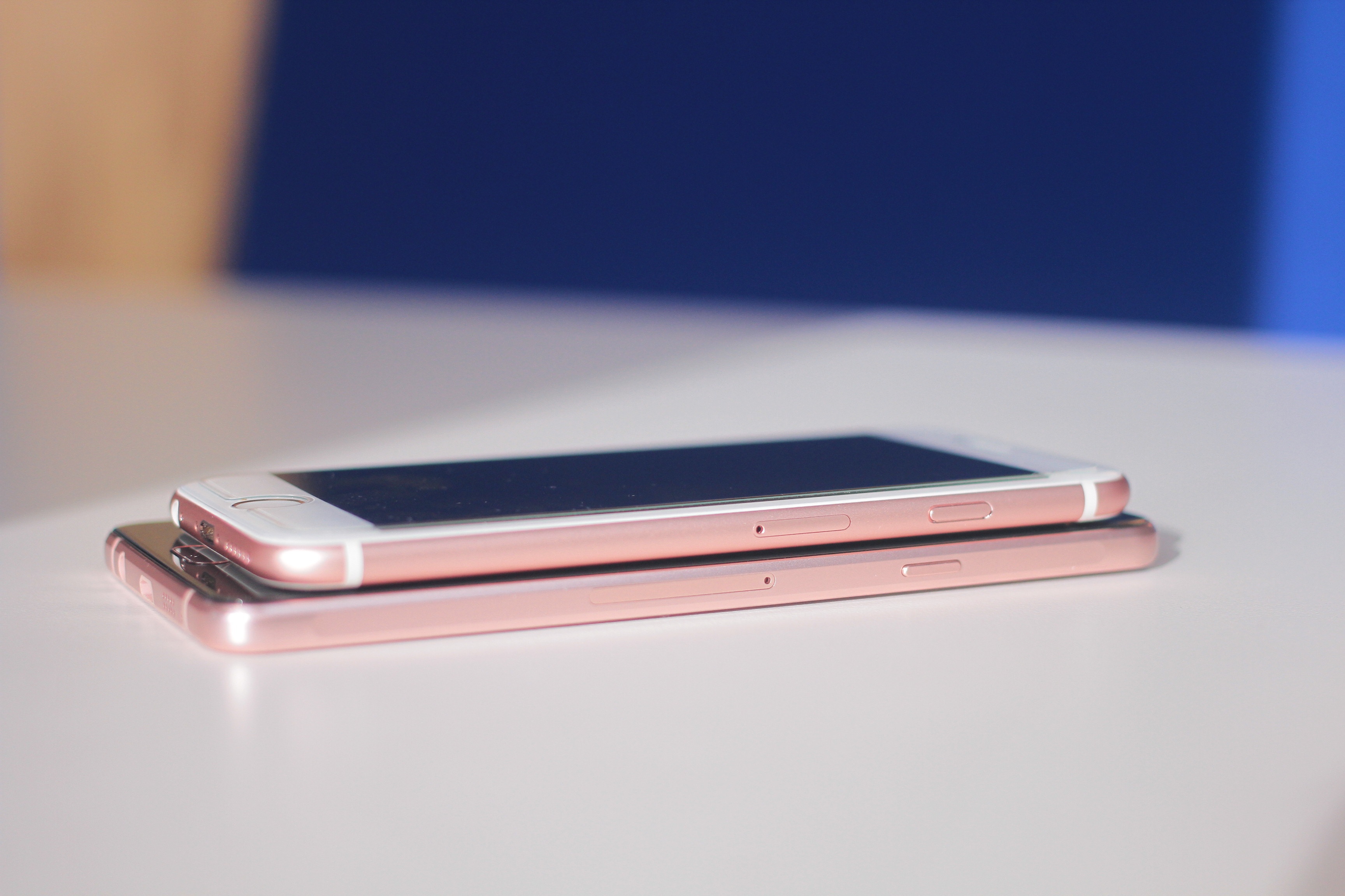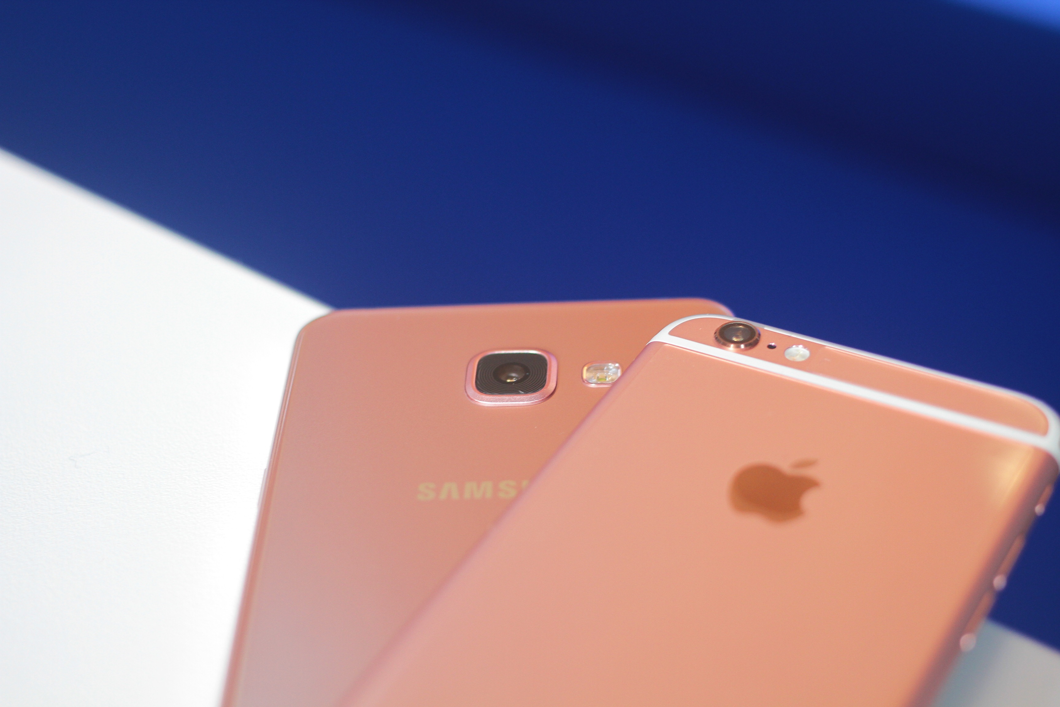 Galaxy A7 2016 so màu vàng hồng với iPhone 6S