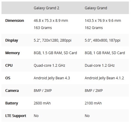 | Galaxy Grand 2 đọ cấu hình với chiếc Grand đời đầu tiên. |