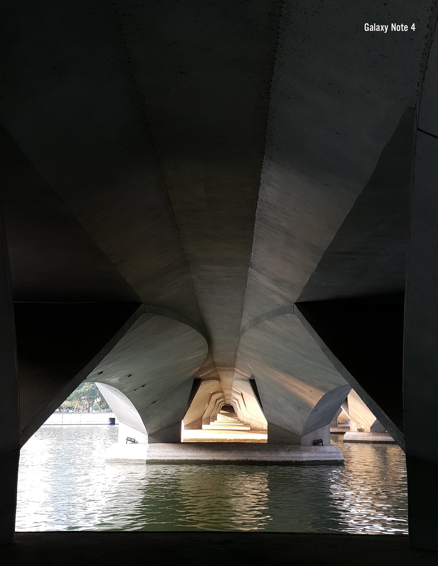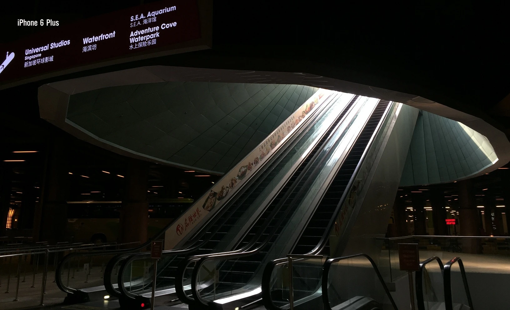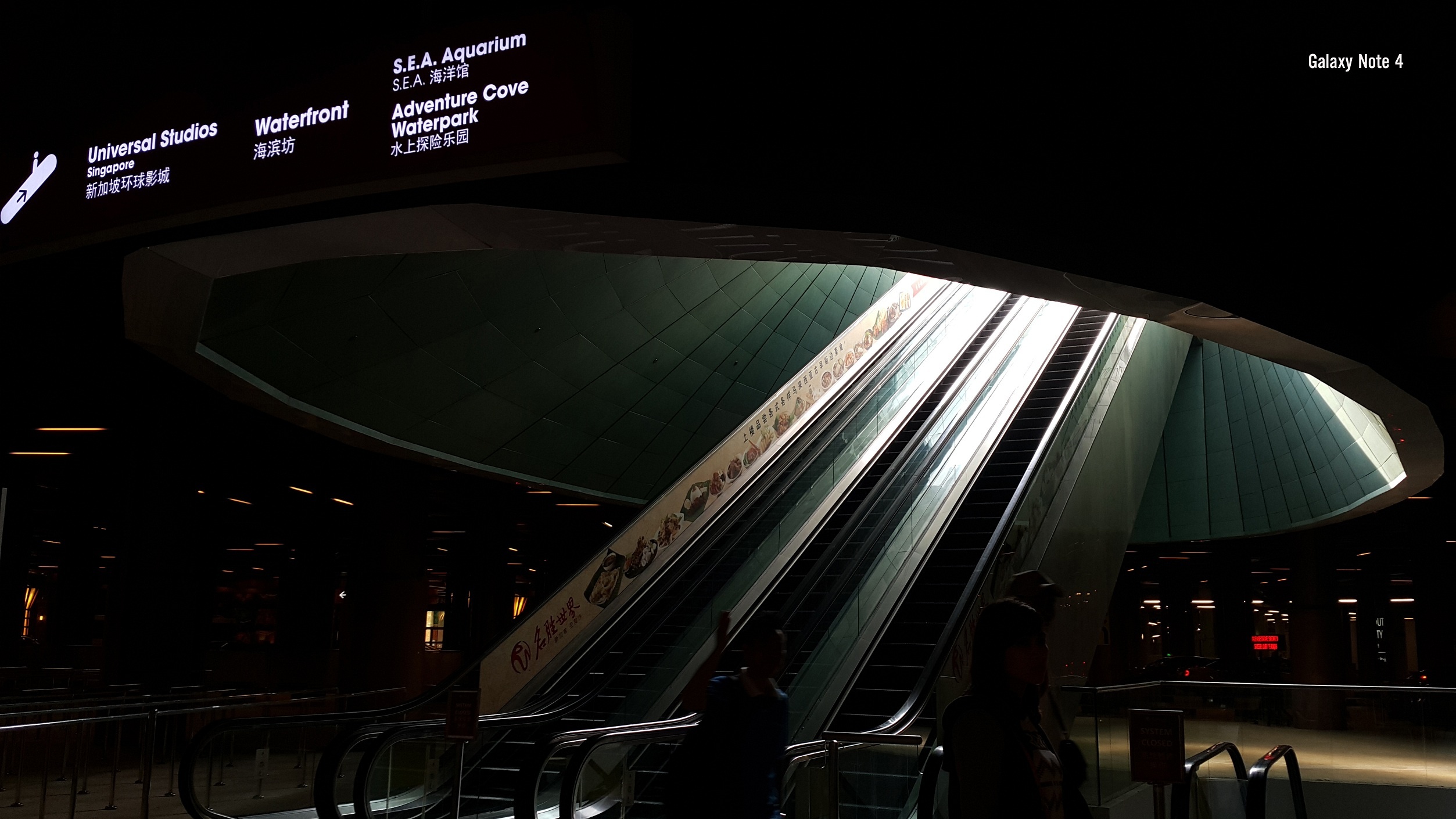 | Loạt ảnh so sánh dưới đây chụp bằng Galaxy Note 4 và iPhone 6 Plus được để nguyên đúng màu sắc như ảnh gốc. Zing.vn chỉ crop lại hình nhỏ hơn. Bức ảnh này chụp hệ thống thang cuốn bên dưới khu vui chơi ở Singapore. |