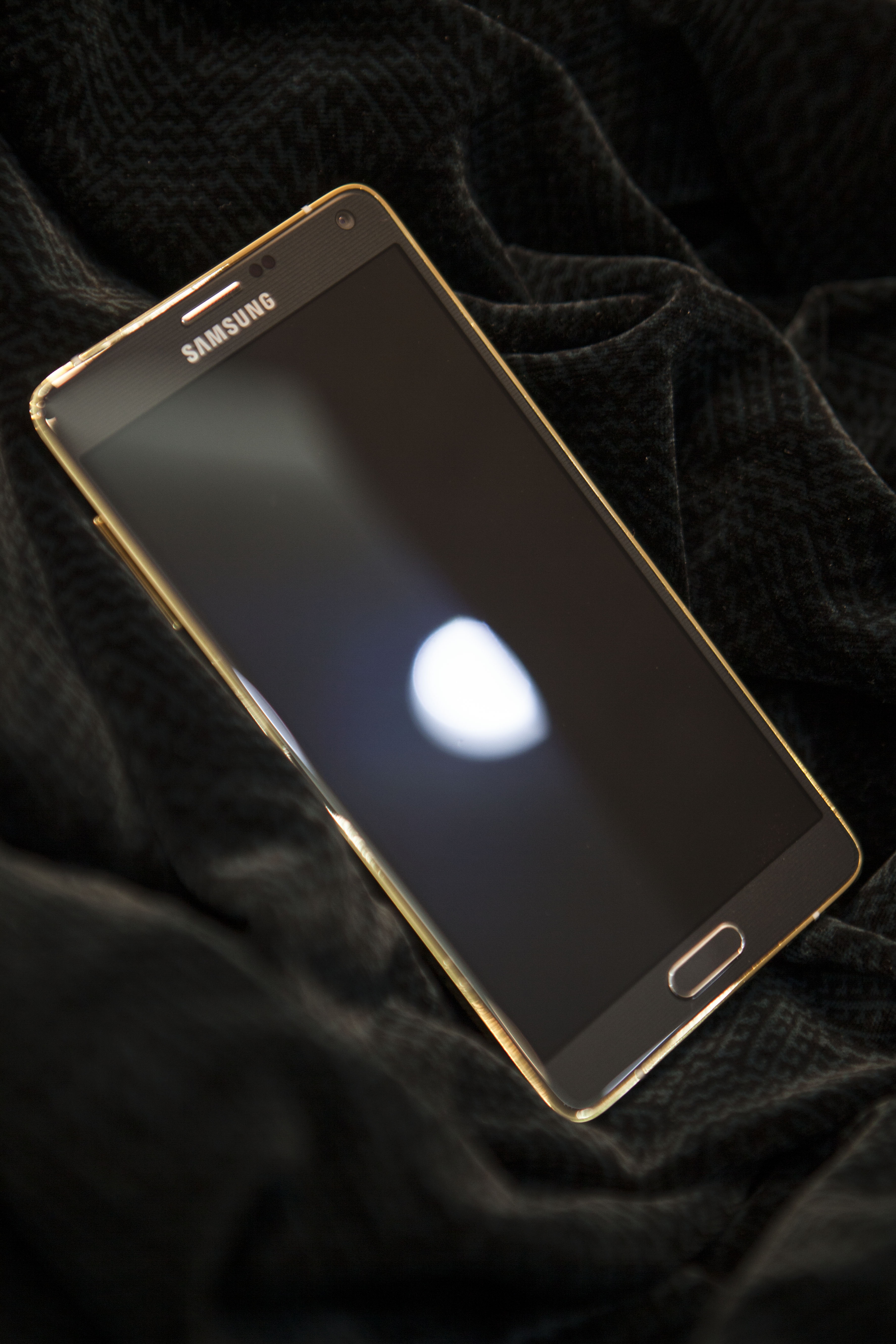 Khác với các phiên bản Galaxy Note và Galaxy S được sản xuất bằng nhựa ABS phủ Chrom trước đây, Galaxy Note 4 được Samsung trang bị khung nhôm, gia công cơ khí và gắn kết sườn nhựa với độ chính xác cao. Nhờ đó, sản phẩm này đạt điều kiện để có thể mạ vàng như iPhone. |