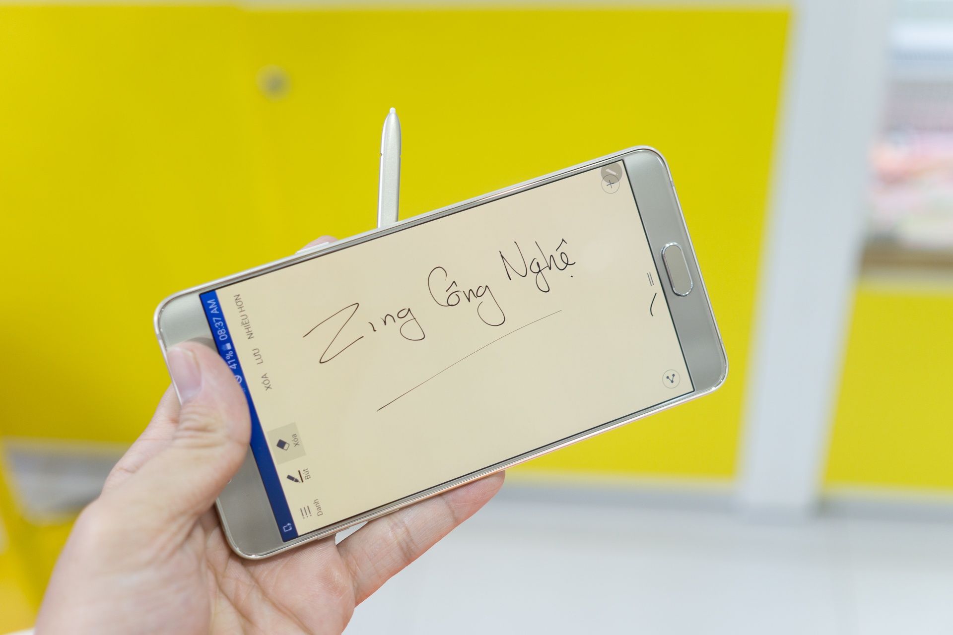 | Cảm giác viết tay trên Galaxy Note 5 đã được cải thiện để nhanh, nhạy hơn, cho cảm giác cầm giống bút thật. |