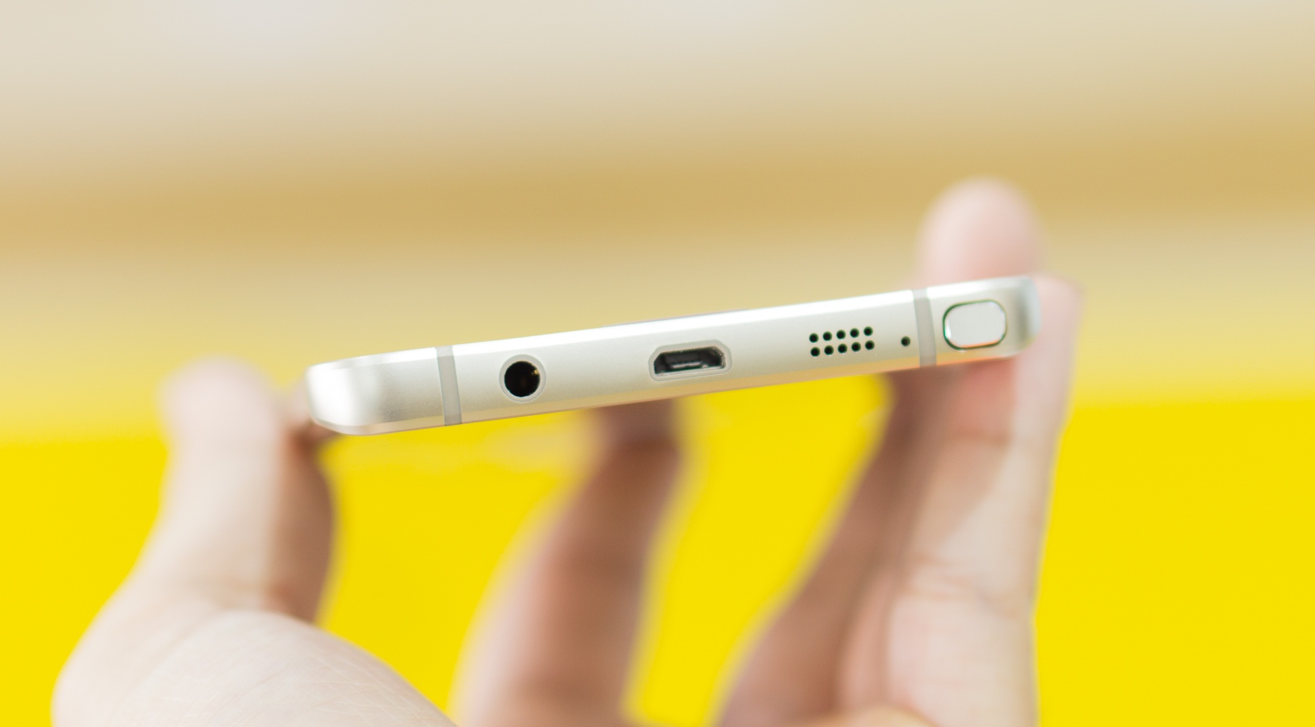 | Cạnh dưới có giắc âm thanh, microUSB, loa và bút S Pen. |