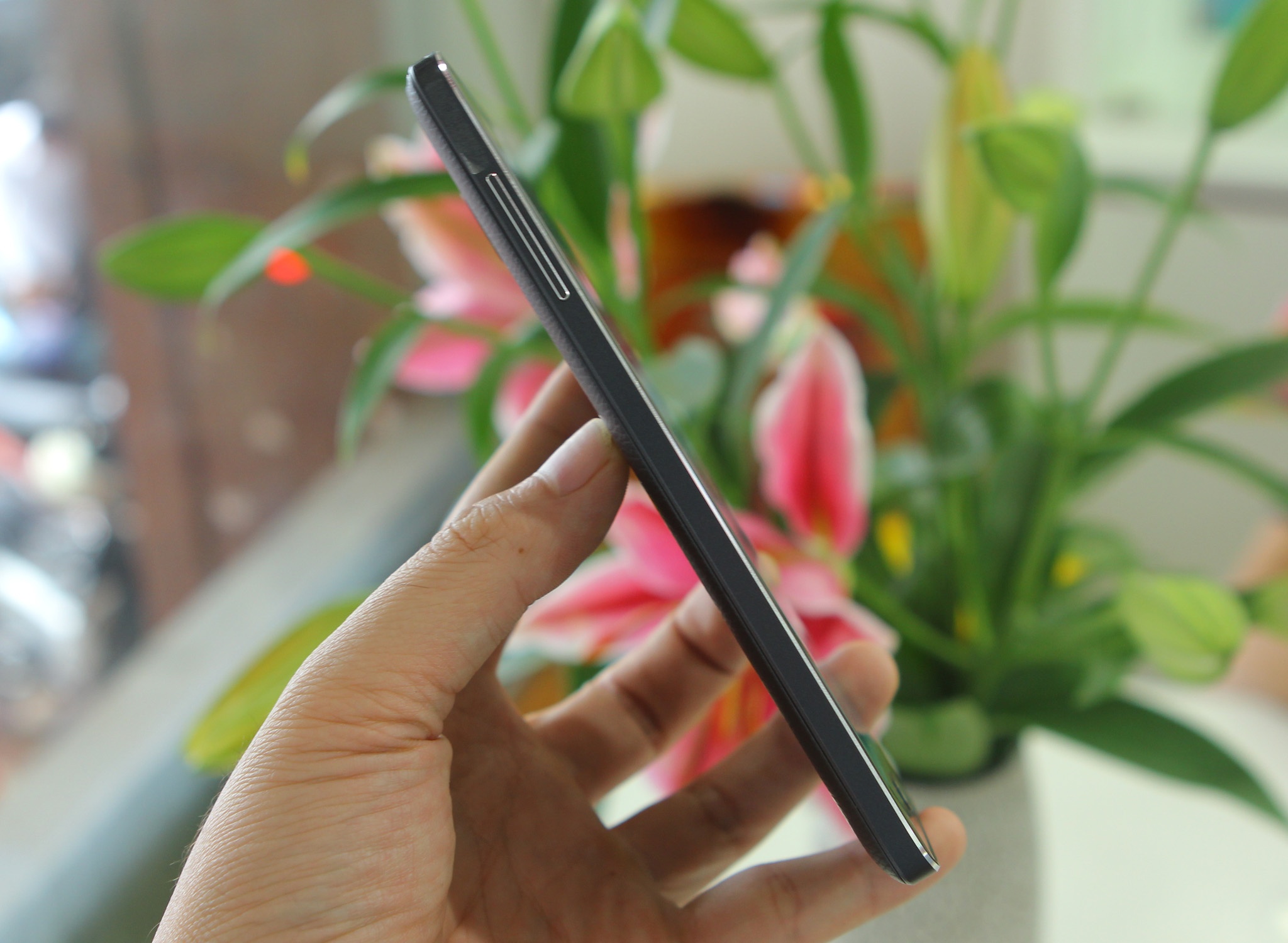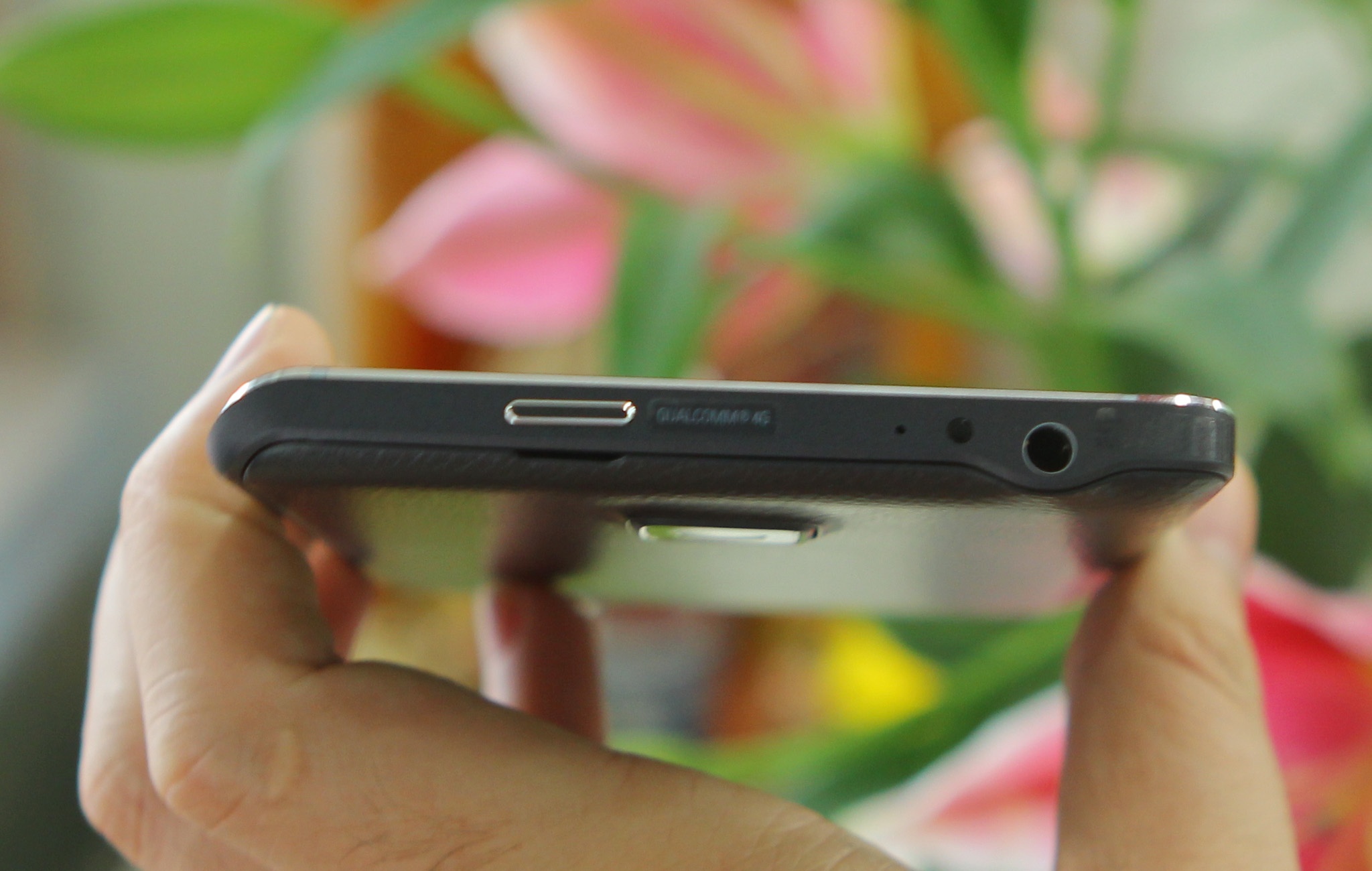 Chi tiết cạnh trái của máy. Note Edge cầm khá nhẹ nhưng do cạnh bên lớn (lớn hơn Note 4 do phần màn hình uốn cong) nên khó sử dụng bằng một tay.