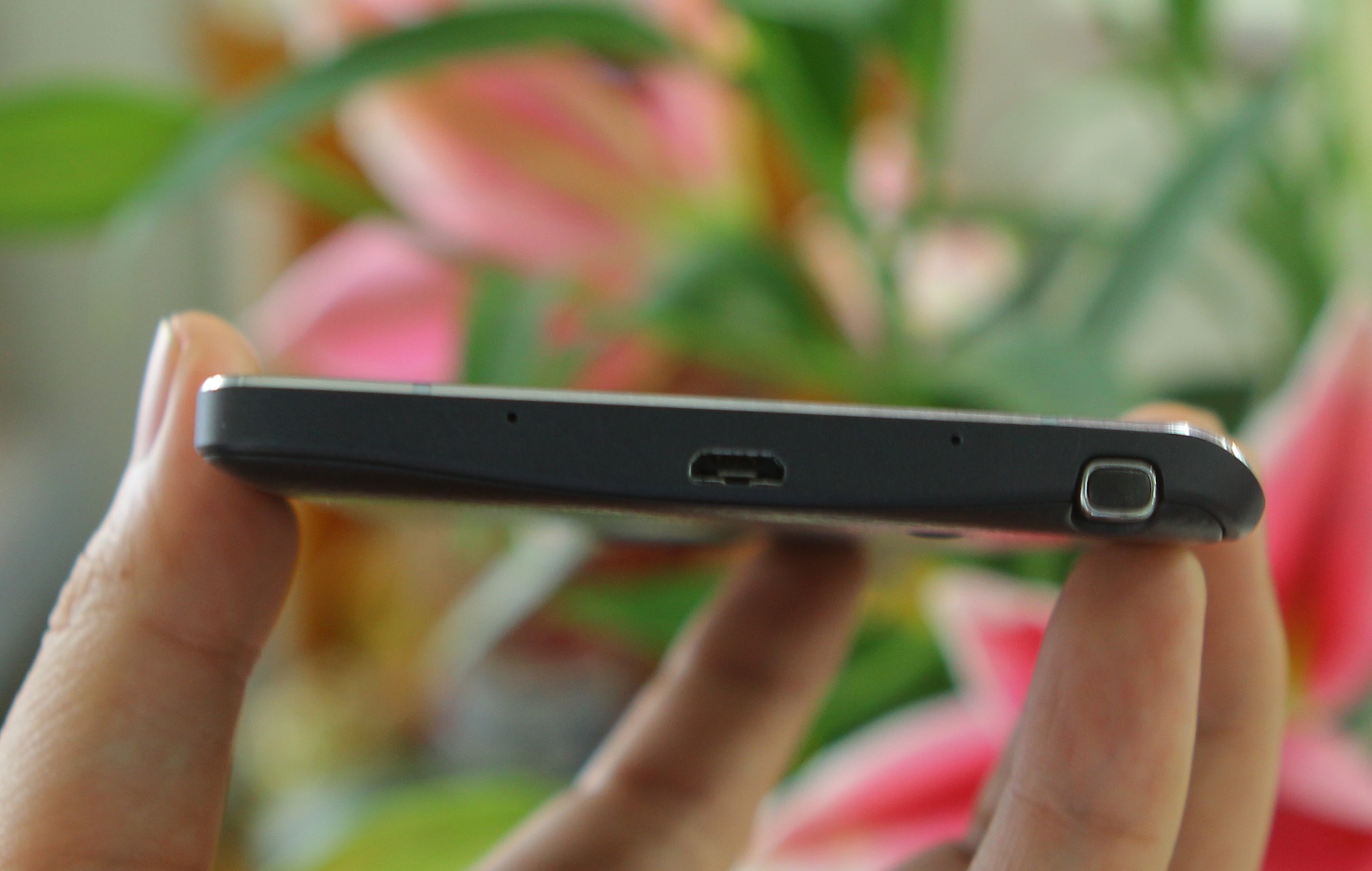 Cạnh dưới với cổng kết nối microUSB. Giống như các sản phẩm xách tay Nhật khác, model này không có sạc, cáp hay tai nghe đi kèm, chỉ có hộp đựng, sách hướng dẫn.