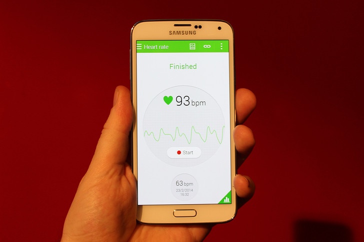 | Galaxy S5 còn có thêm cảm biến đo nhịp tim. |