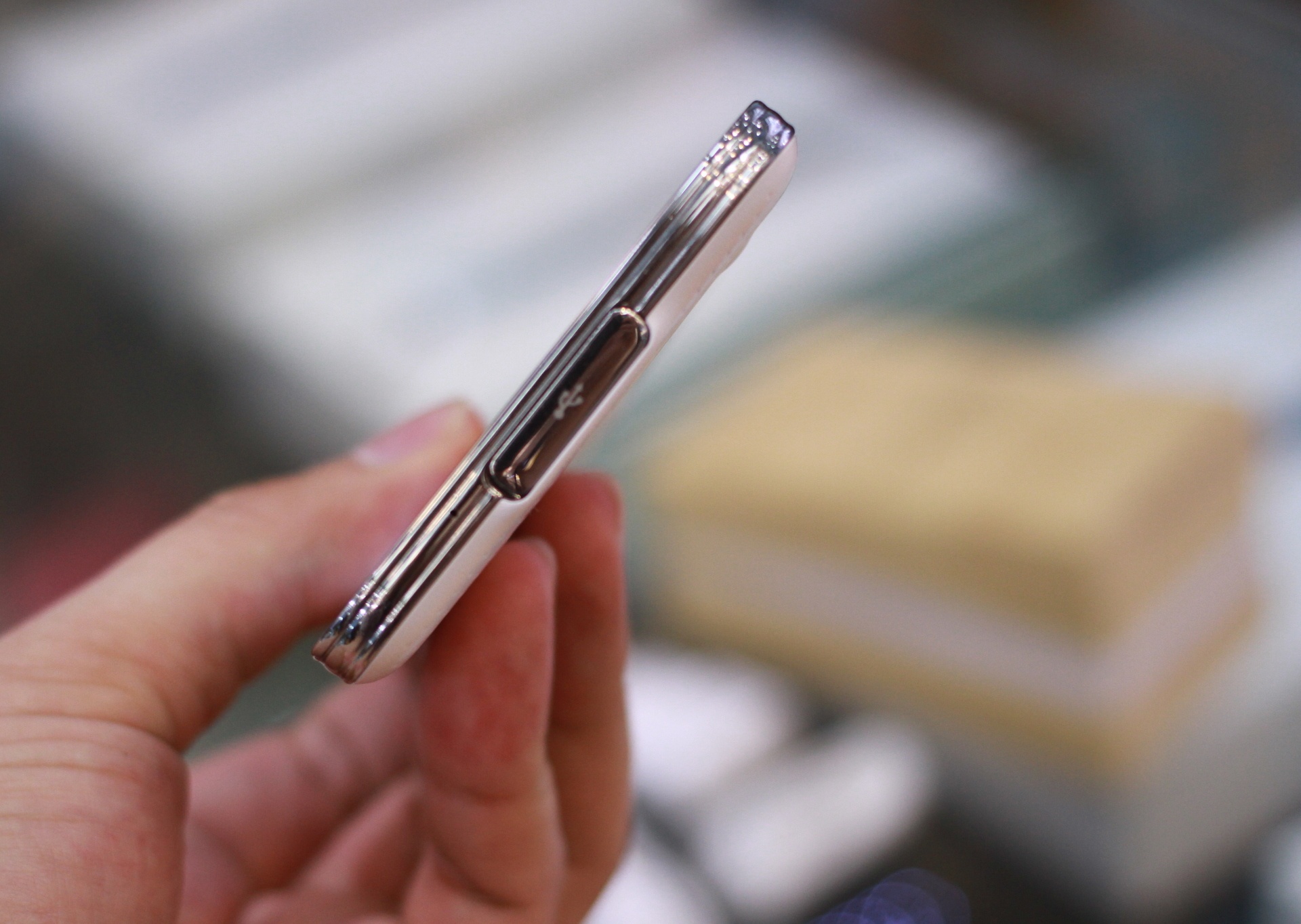 | Tương tự như các model thuộc họ sản phẩm Galaxy, Galaxy S5 có viền mạ kim loại bao quanh máy. |