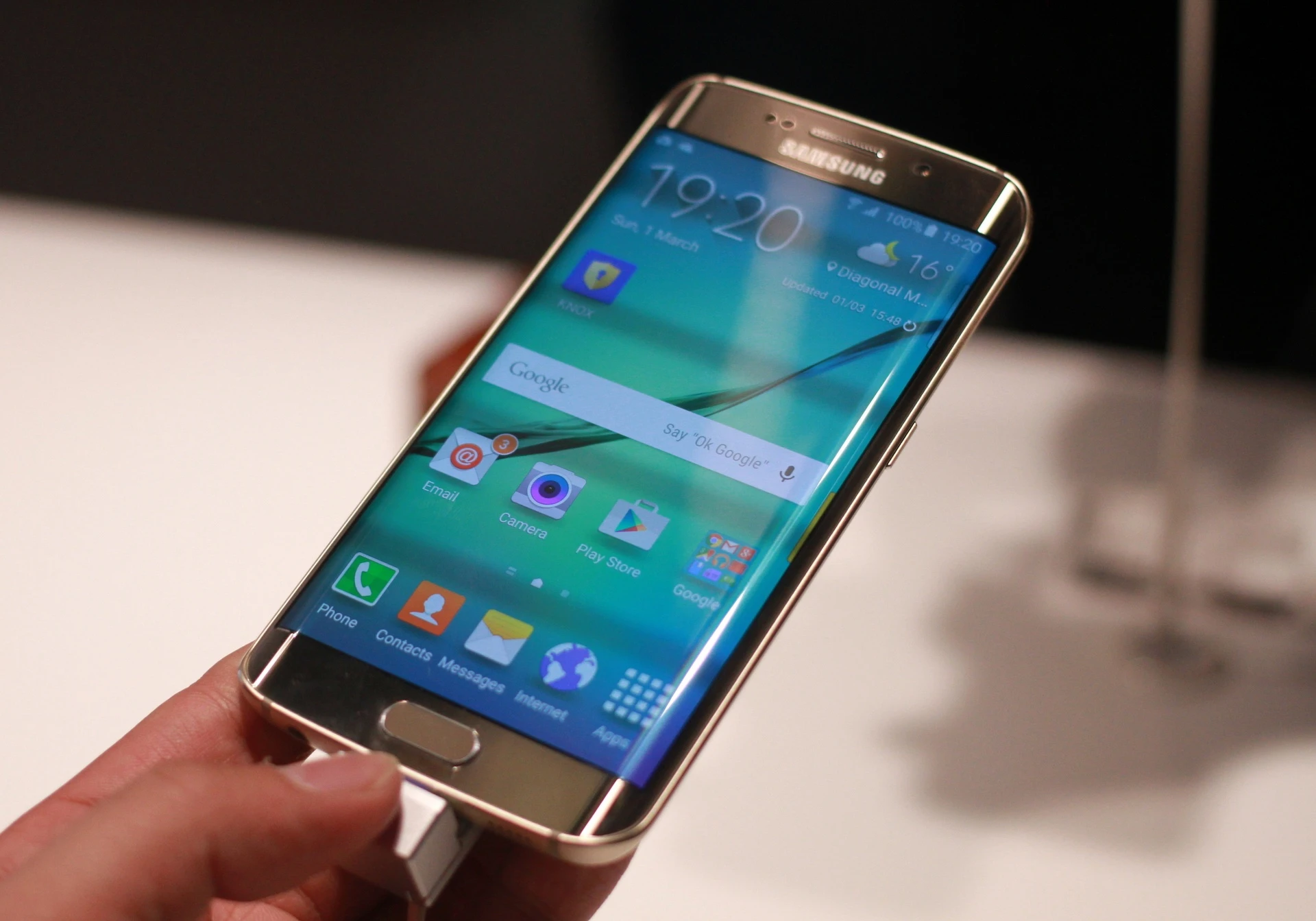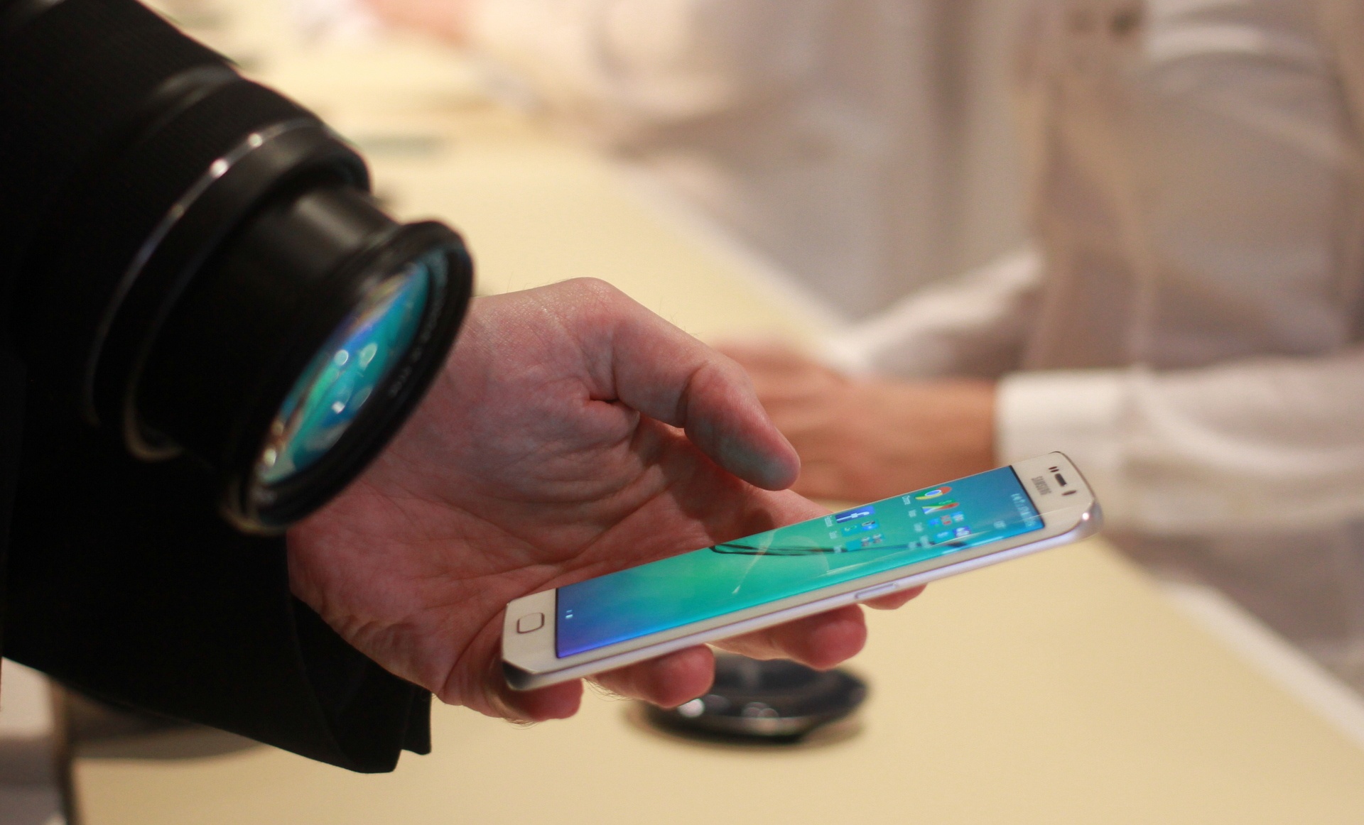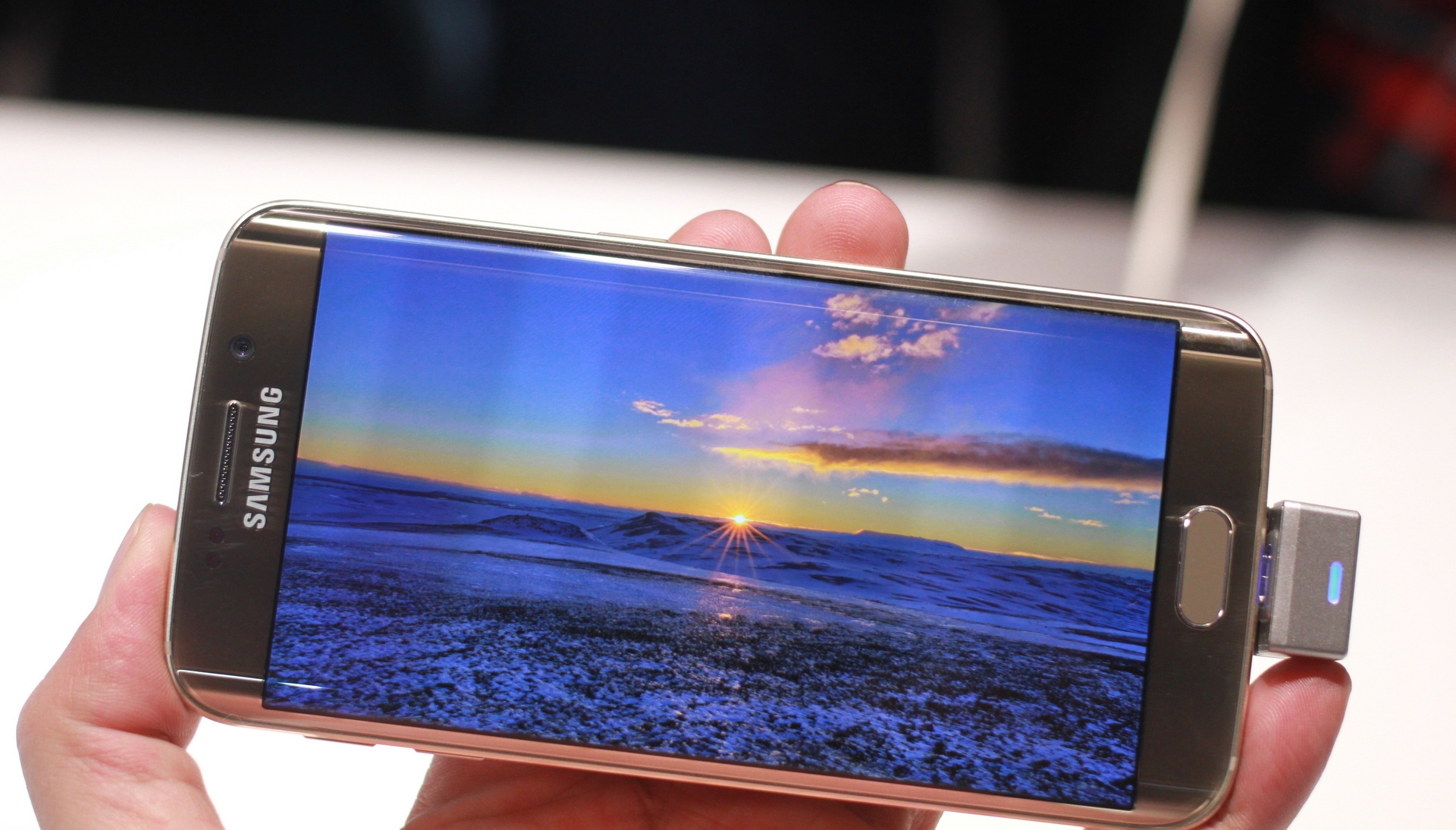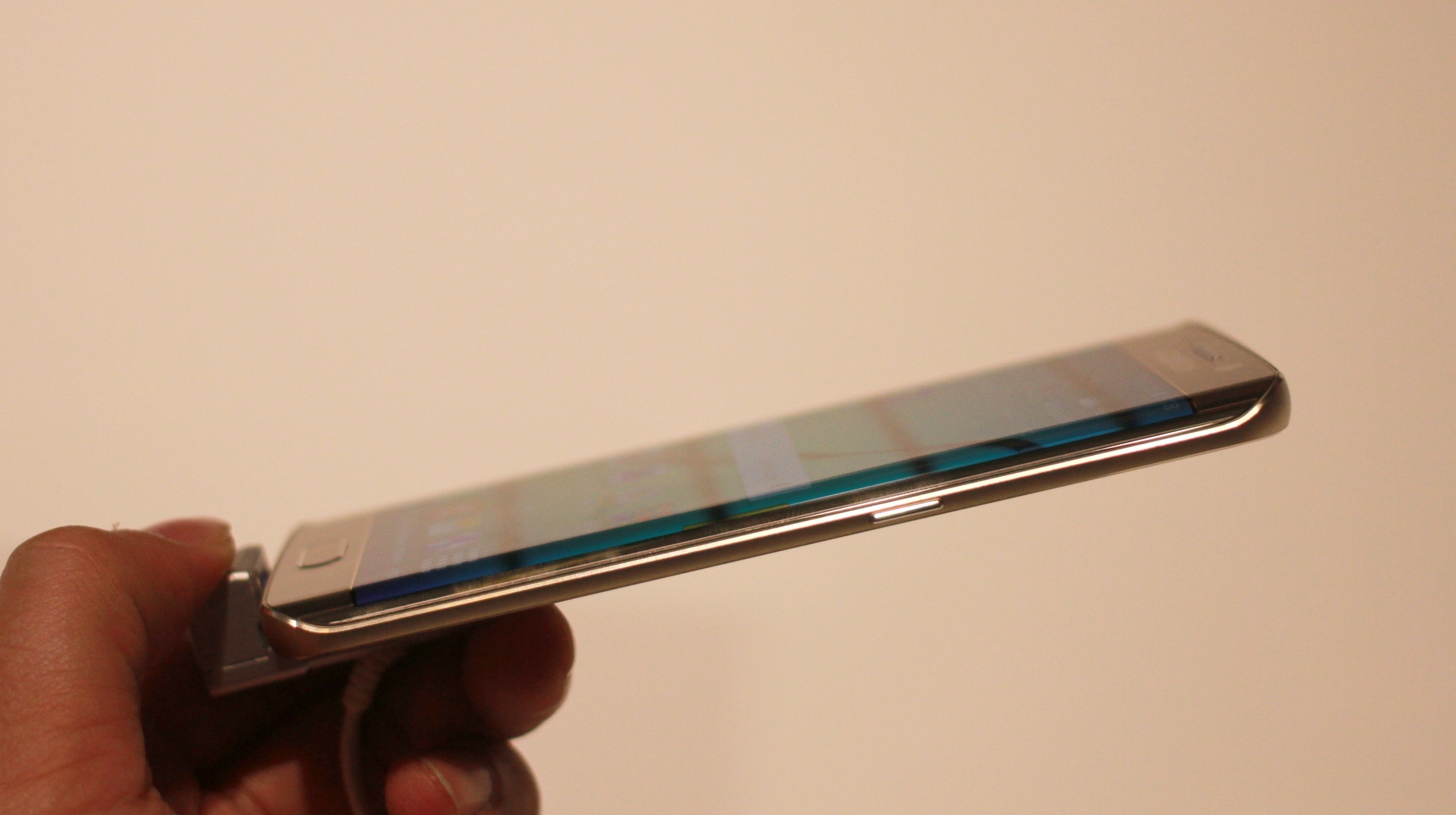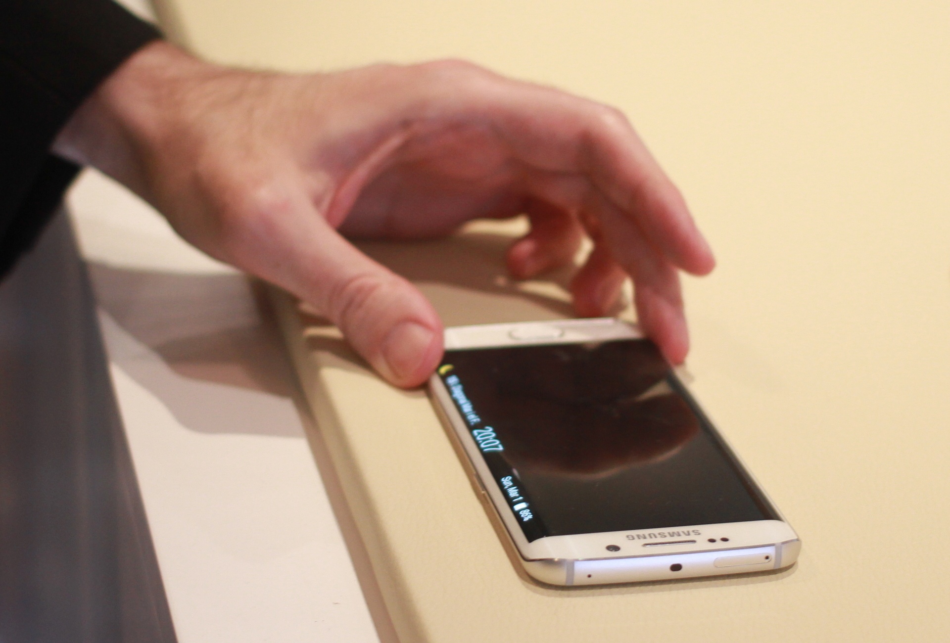 Galaxy S6 Edge dù có nhiều tin đồn, rò rỉ trước khi công bố, nhưng máy vẫn mang đến nhiều háo hức cho khách trải nghiệm. Phần lớn các phóng viên, đối tác Samsung khi đi vào khu trưng bày, đều muốn chạm lên model này. Cảm giác đầu tiên khi cầm S6 Edge trên tay là sự sắc lạnh của kim loại và màn hình cong sexy.