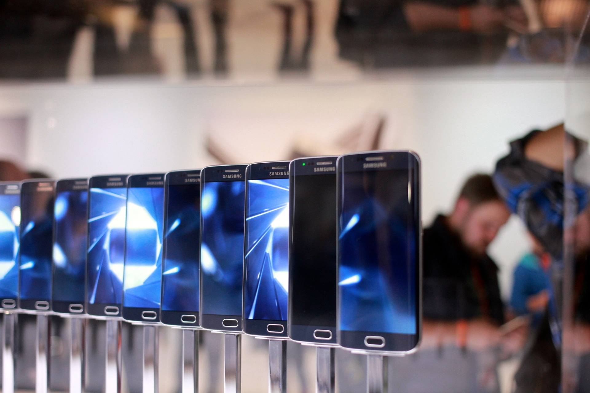 Nhà sản xuất Hàn Quốc có gian trưng bày hoành tráng tại sự kiện của mình, đặc biệt là những chiếc Galaxy S6 Edge màn hình cong.