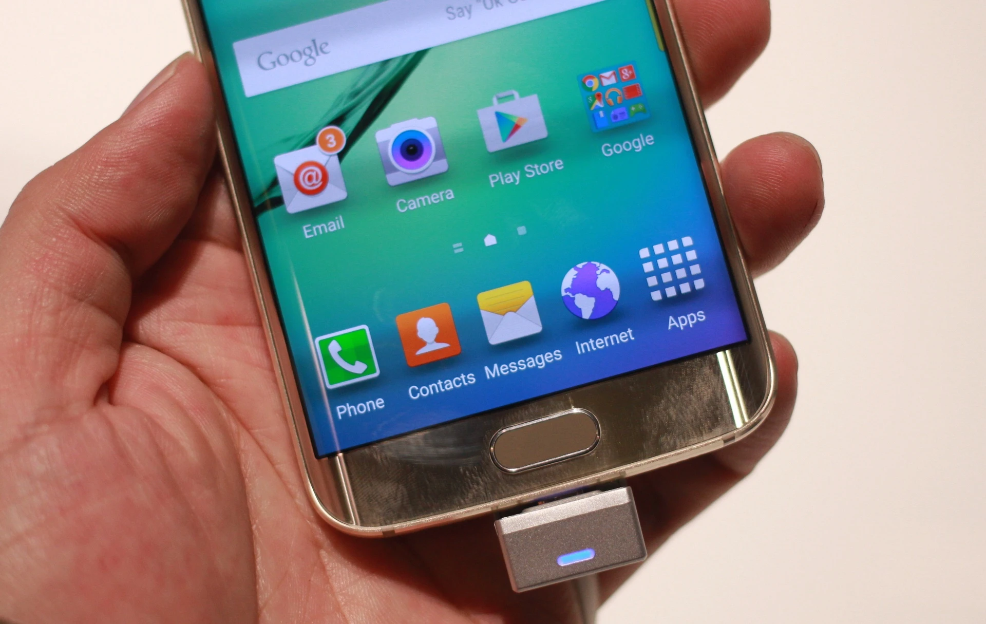 Nếu như Galaxy Note Edge năm ngoái cong một cạnh, và dành hẳn phần bên để hiển thị các ứng dụng, thì Galaxy S6 Edge lại thực tế hơn. Máy cong 2 cạnh khá mềm mại, không quá gấp khúc. Người dùng chỉ vuốt nhẹ 3 lần lên phần cong, máy sẽ hiển thị các thông tin, thông báo.