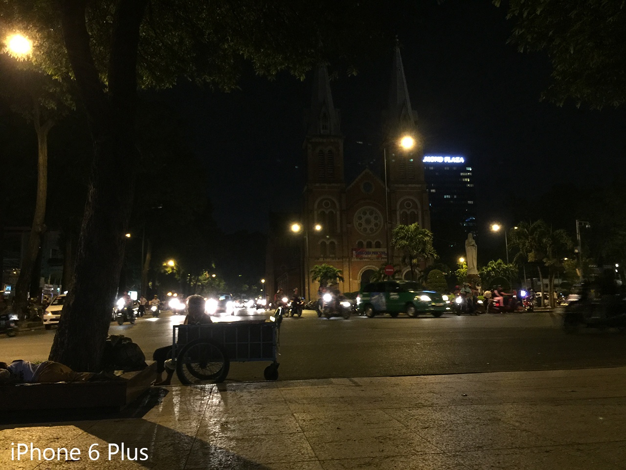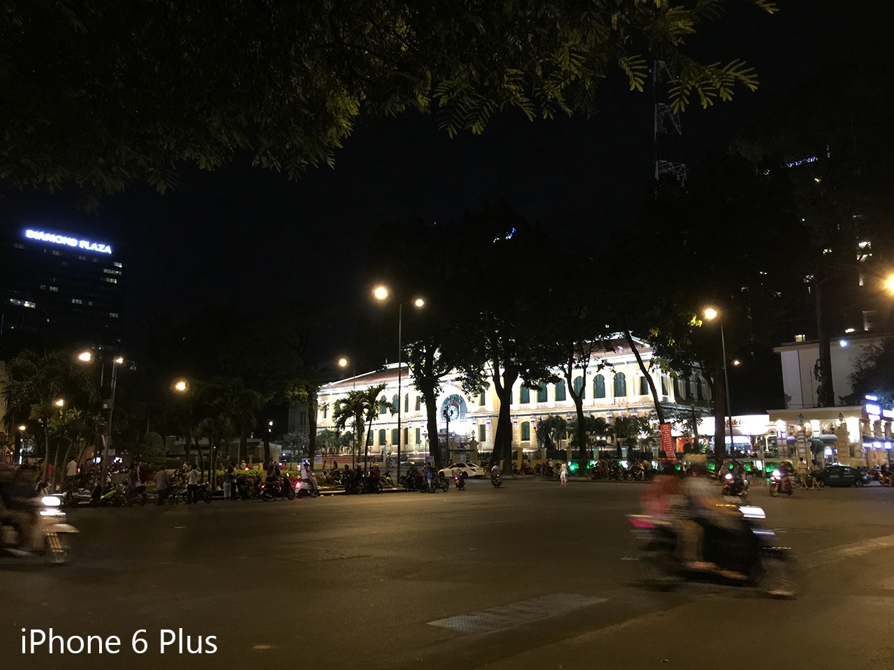 | Tình huống chụp này cho thấy sự cách biệt rõ rệt trong khả năng chụp ảnh đêm của Galaxy S6 và iPhone 6 Plus. |