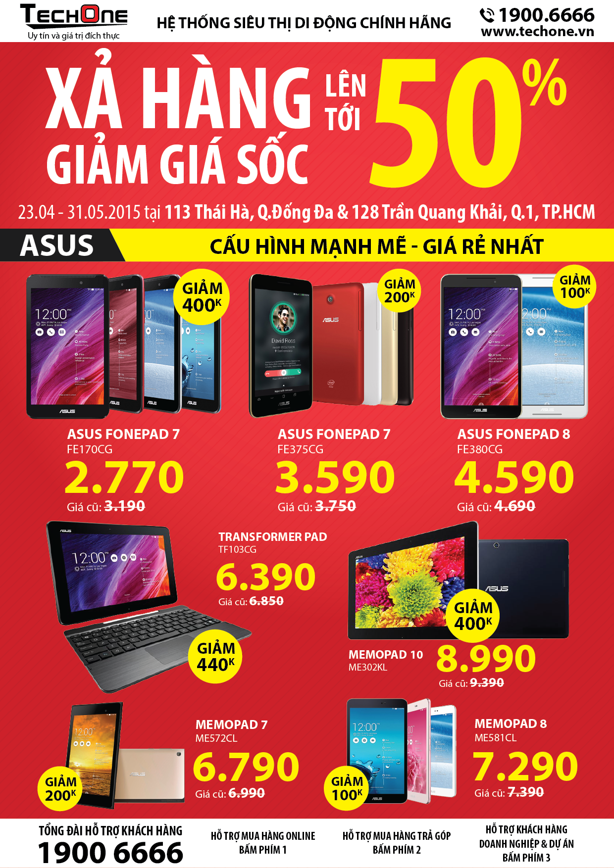 Nhằm mang tới cơ hội sở hữu smartphone cho khách hàng, TechOne triển khai chương trình Xả kho, sở hữu smartphone với mức giá giảm tới 50%, tạo cơ hội mua điện thoại tốt với giá từ 690.000 đồng, cùng chế độ bảo hành cũng như chất lượng sản phẩm không thay đổi.