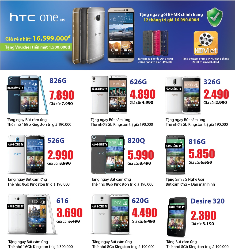 Hệ thống di động TechOne còn dành tặng khách hàng mua sản phẩm HTC cơ hội hoàn tiền 100% tiền mặt, cào trúng thưởng 100% và chuyến du lịch dành cho 2 người trị giá 200 triệu (chi tiết theo dõi tại website của công ty). Gói ưu đãi khi mua HTC One M9 chỉ có tại TechOne:
