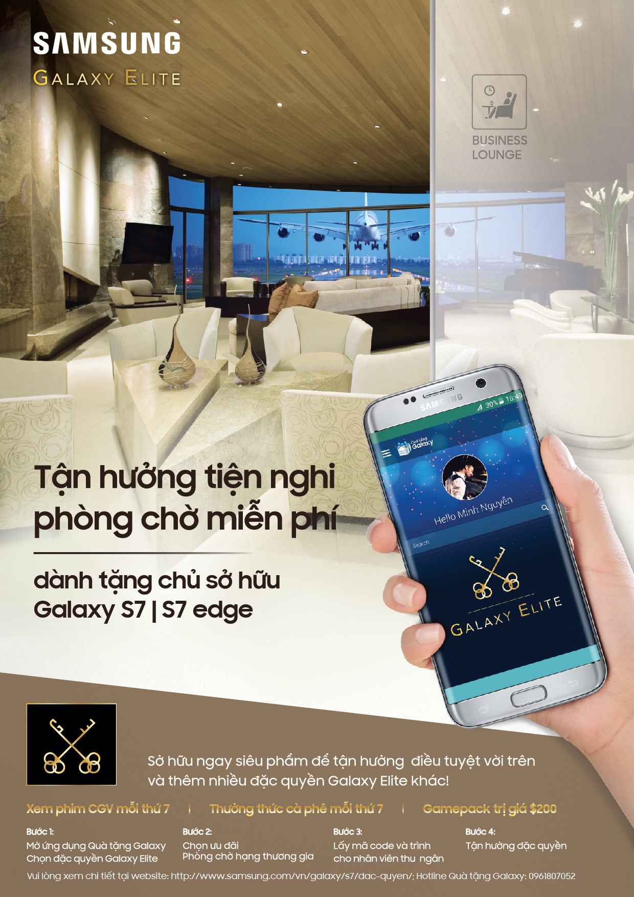 Các đặc quyền như xem phim, uống cà phê miễn phí và sử dụng phòng chờ hạng thương gia tại sân bay chiếm được tình cảm của đa số người dùng Samsung Galaxy S7 và Galaxy S7 edge.
