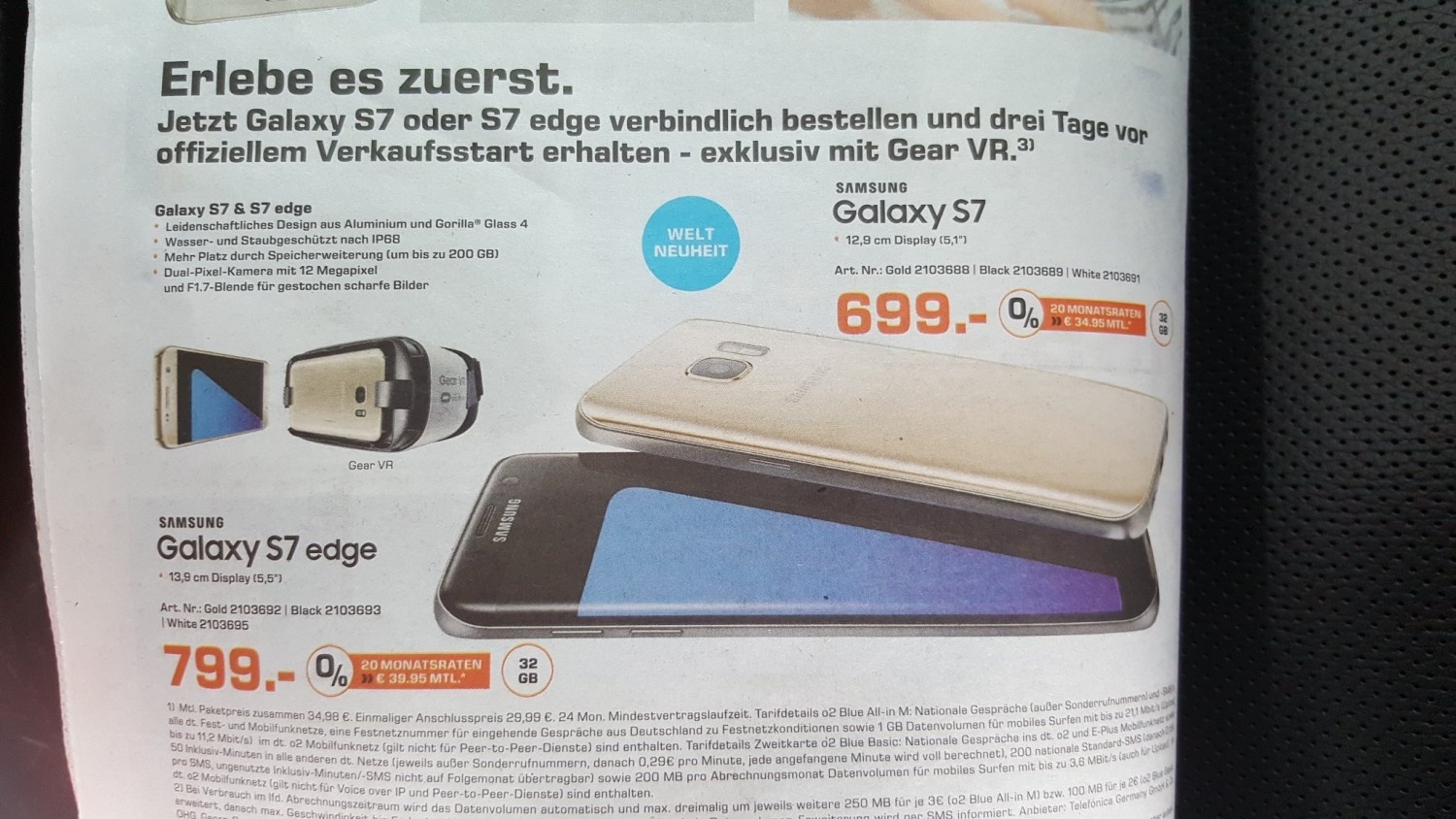 Một nguồn tin từ Đức tiết lộ thêm, Galaxy S7 và S7 edge có giá bán lẻ lần lượt là 699 EUR (778 USD) và 799 EUR (889 USD). Những khách hàng đặt mua sớm sẽ có cơ hội nhận thêm một thiết bị thực tế ảo Gear VR.