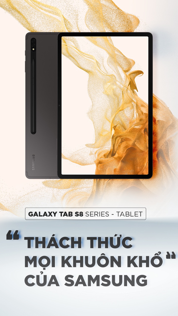 Tại sự kiện Galaxy Unpacked 2022, Samsung chính thức ra mắt thế hệ tablet “thách thức mọi khuôn khổ” Galaxy Tab S8 series với 3 model Tab S8, S8+ và S8 Ultra.