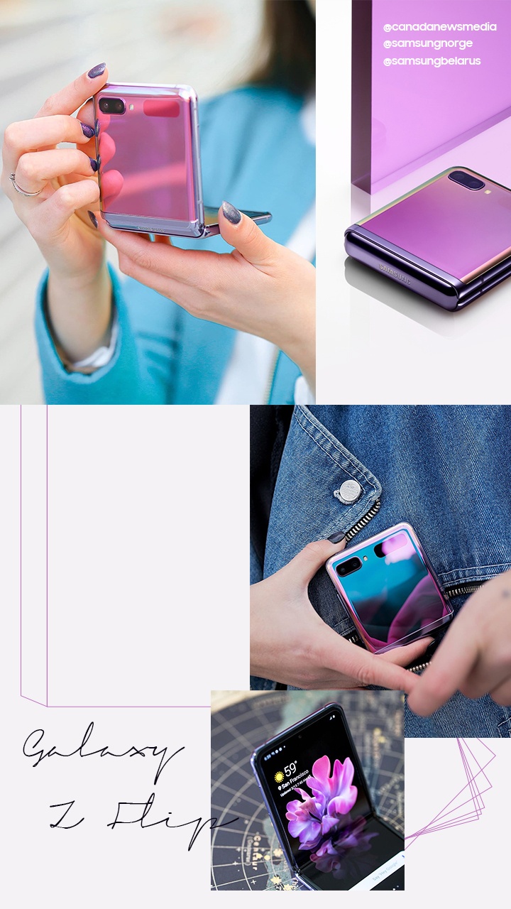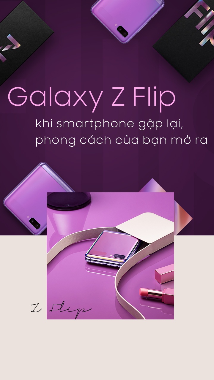 Galaxy Z Flip mở rộng ranh giới của những chiếc điện thoại gập, với hình dạng và cách thức mở hoàn toàn khác biệt. Thiết kế tinh gọn, màu sắc bắt mắt, Z Flip có thể tự đứng vững, giải phóng đôi tay của người dùng. Với những thay đổi mới mẻ này, loạt trải nghiệm đầy màu sắc sẽ mở ra trước mắt người dùng.