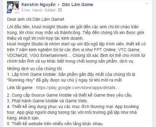 Theo Kỳ Nam, nhóm phát triển trên đã không hề liên lạc với anh trước khi làm game "Running Hoy". Đến khi anh biết được và lên tiếng, nhóm này bào chữa rằng chỉ làm game miễn phí cho cộng đồng, không vì mục đích thương mại.