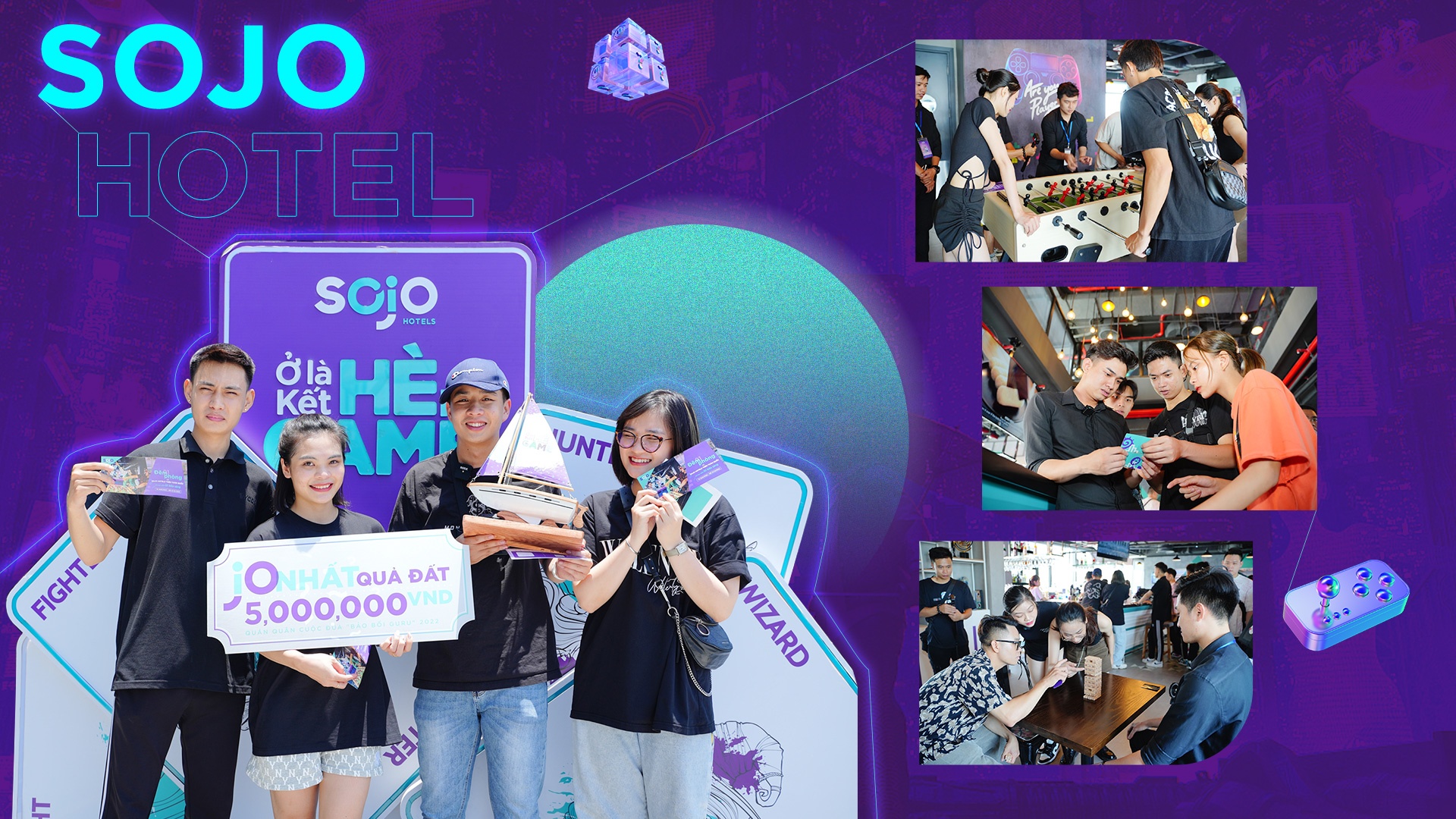 Đặc biệt, SOJO Hotels sản xuất gameshow “Bảo bối GURU” ghi hình tại SOJO Hotel Ga Hanoi. Nước đi này tạo khác biệt cho thương hiệu trên thị trường khi phần lớn doanh nghiệp dừng ở việc tạo ra trò chơi online với phần thưởng là voucher, tích điểm. Gameshow thực tế tập hợp những câu hỏi hóc búa, các đội tham gia phải tìm ra câu trả lời, thực hiện thử thách khó nhằn tại SOJO Hotel Ga Hanoi để đi tiếp vào vòng trong.