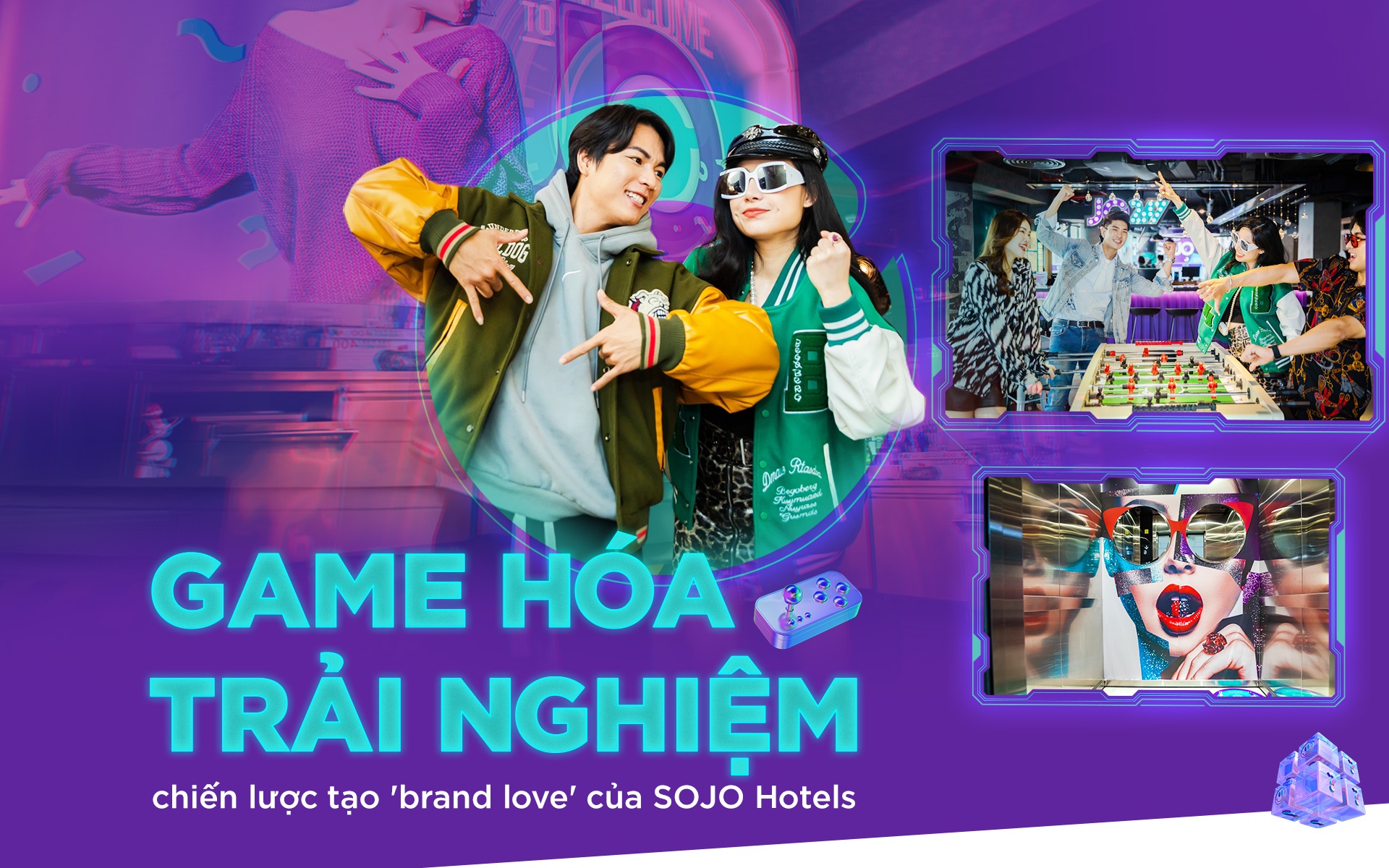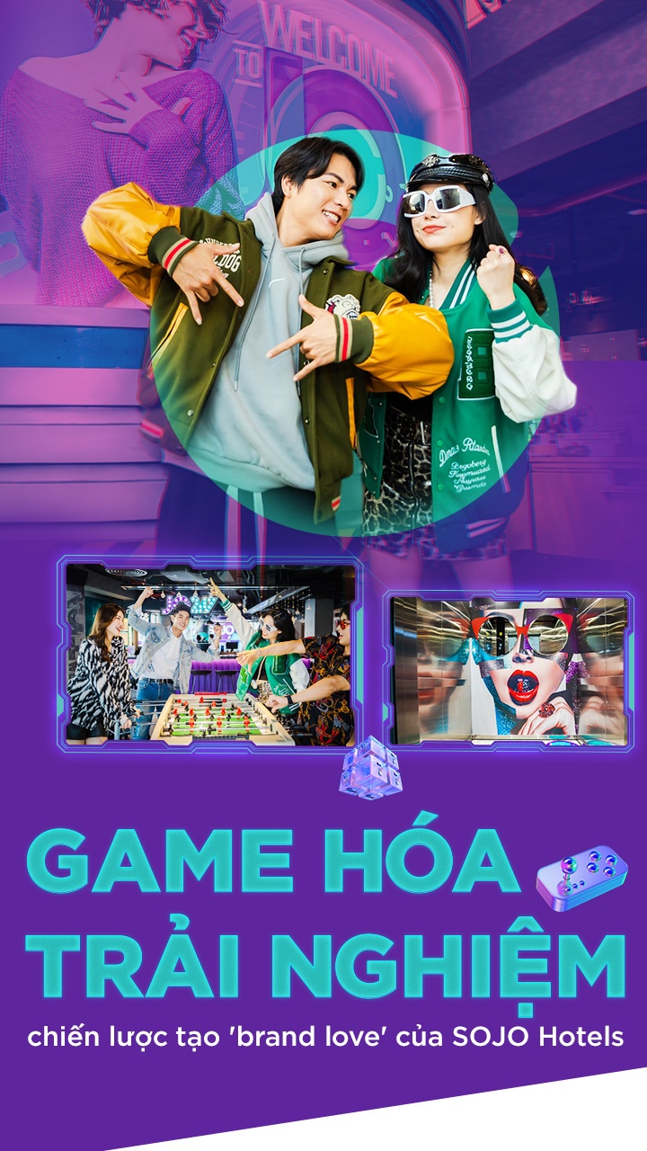 Yếu tố game hiện diện xuyên suốt quá trình trải nghiệm của du khách tại SOJO Hotels. Đầu tiên, khách hàng sẽ bước vào “cuộc chơi” cảm xúc với giai điệu, màu sắc được chọn lọc kỹ lưỡng, sắp xếp tỉ mỉ và sáng tạo. Tiếp đến, khách sạn tạo ra cuộc đấu trí nho nhỏ với câu hỏi “tắm trước hay gội trước”, “nghĩ ngợi hay nghỉ ngợi”...