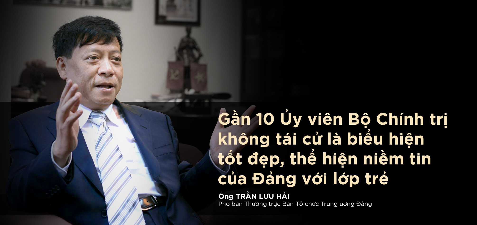 Vừa qua, gần 10 ủy viên Bộ Chính trị không tái cử là biểu hiện tốt đẹp, các đồng chí lớn tuổi nhường chỗ cho các đồng chí trẻ để phát triển. Điều đó cũng thể hiện niềm tin của Đảng với lớp trẻ.