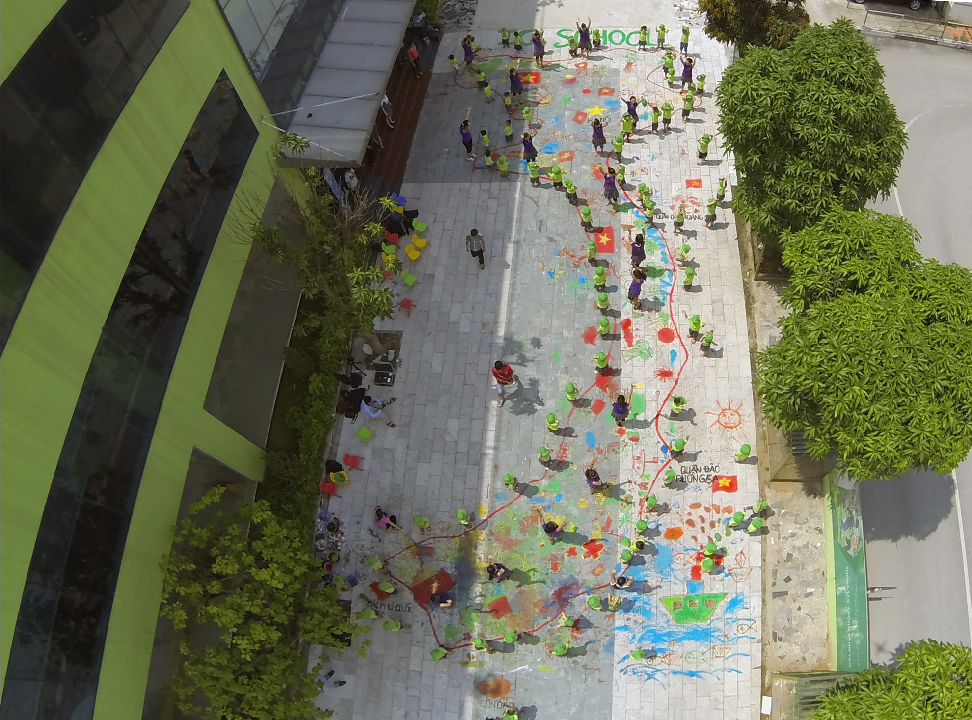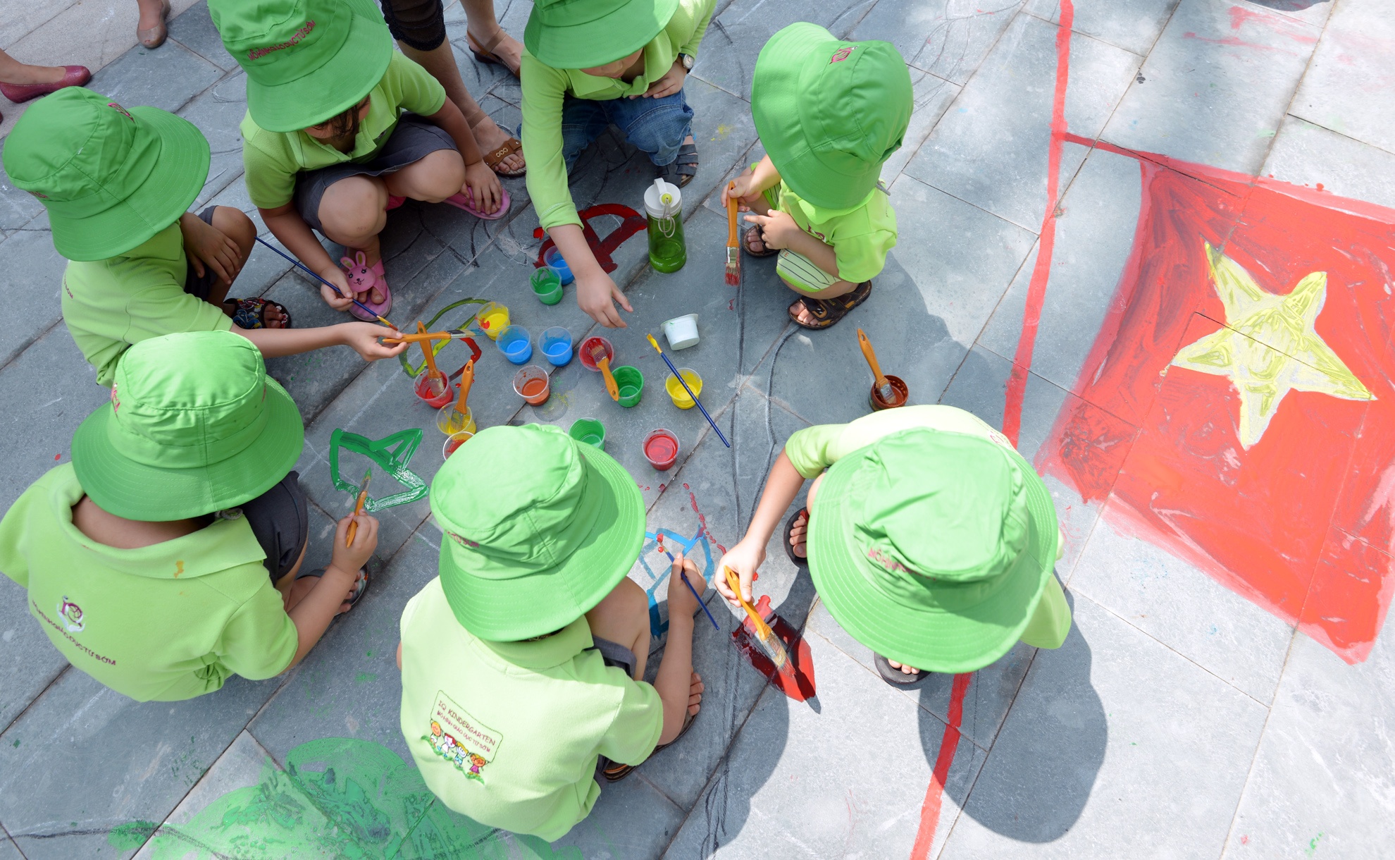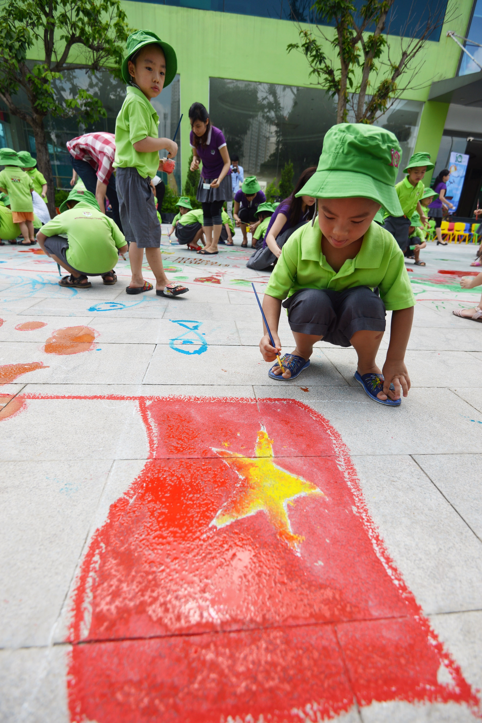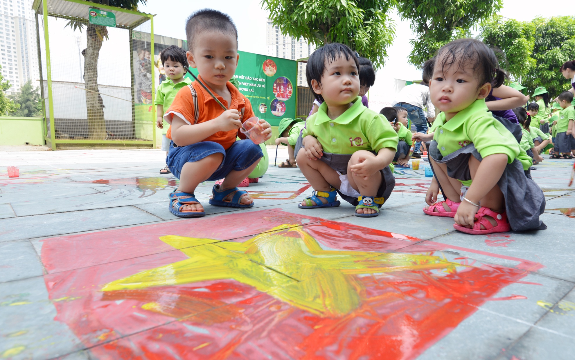 | Với mục đích tạo điều kiện cho các bé có cơ hội hiểu biết về biển đảo quê hương, trường mầm non quốc tế IQ school (Hà Nội) tổ chức buổi xếp hình và vẽ lá cờ Tổ Quốc trong khuôn viên trường. Các em học sinh tại đây có độ tuổi từ 18 tháng đến 3 năm. |