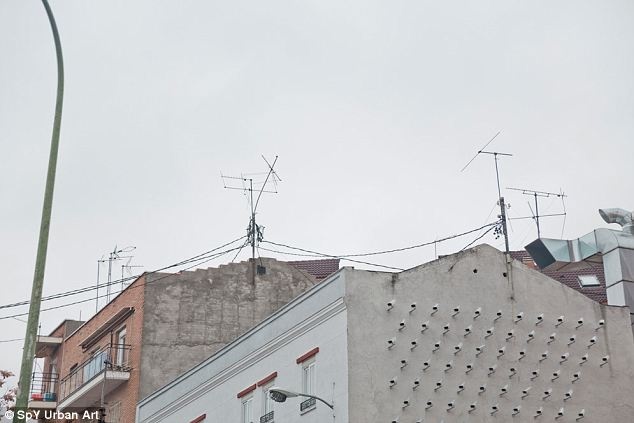 | Nghệ sĩ SpY đã gắn 150 chiếc camera quay ra một con đường ít người qua lại ở thành phố Madrid. Ảnh: SpY Urban Art. |