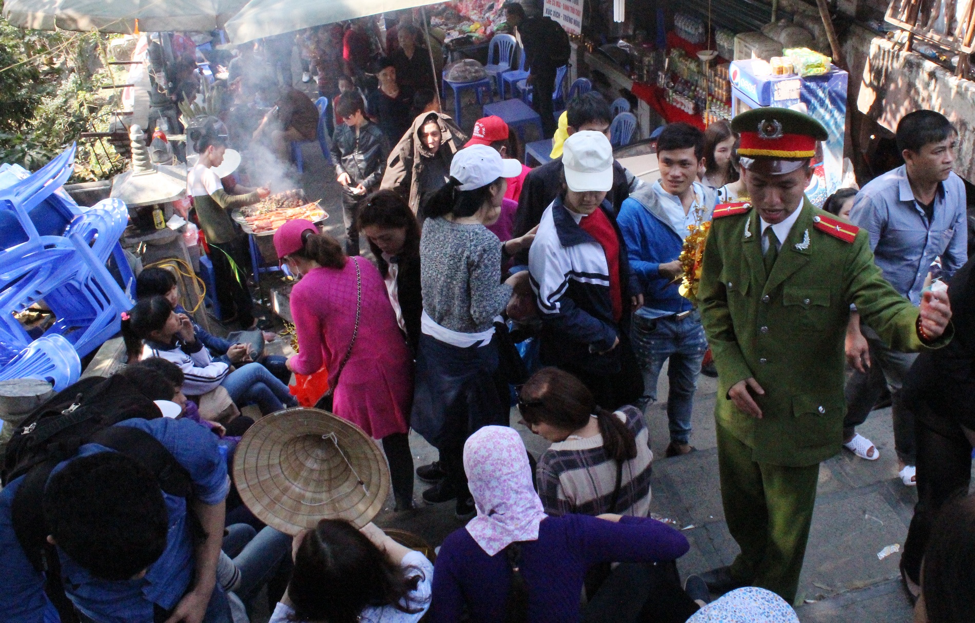| Bên trong nơi thờ tự luôn có cảnh sát hóa trang ứng trực quan sát để phát hiện những kẻ lợi dụng chen lấn, tạo cơ hội móc túi. |