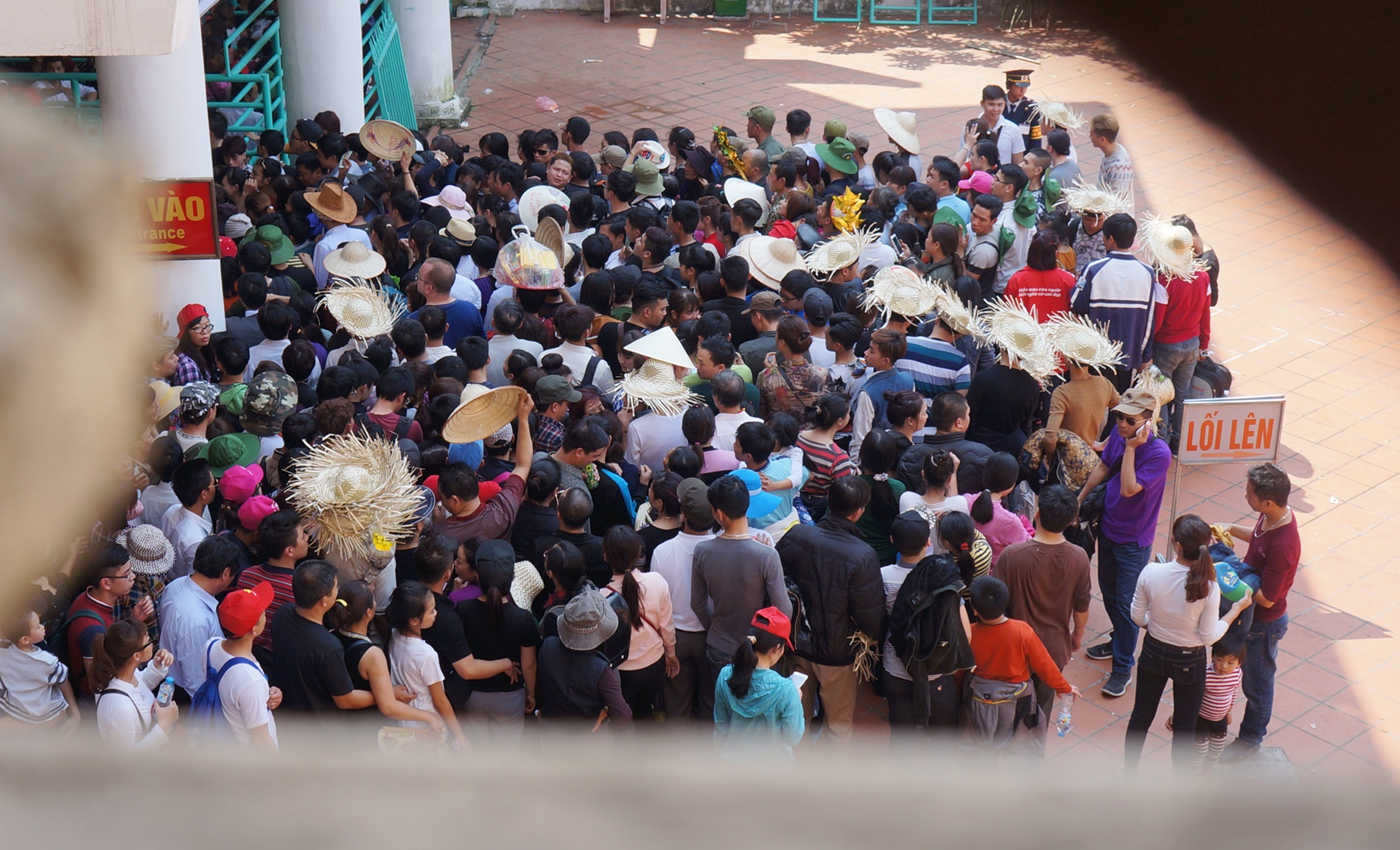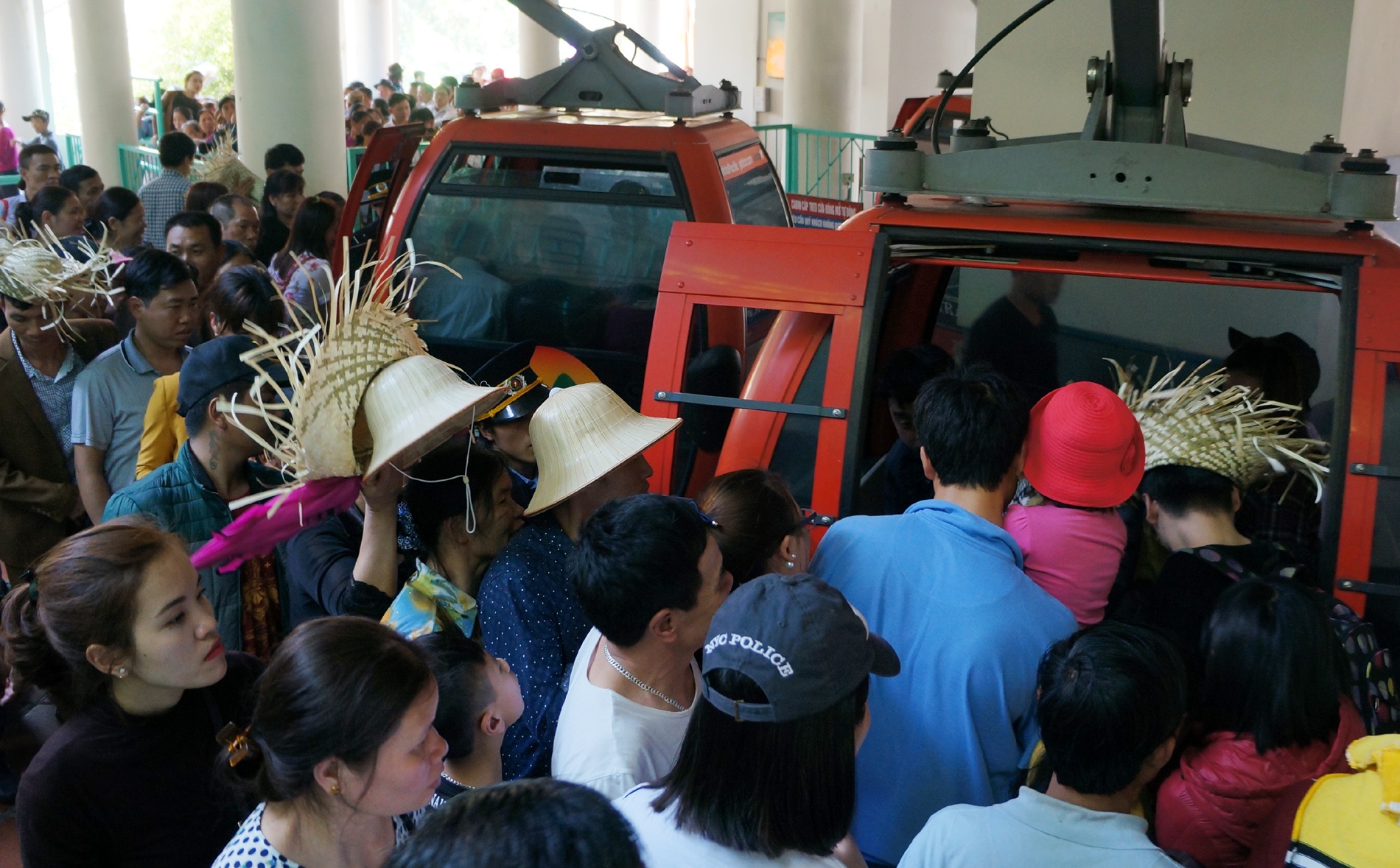 | Để lên cáp treo, từ điểm mua vé hành khách phải xếp hàng di chuyển khoảng 200 m. Khi xảy ra tắc, du khách phải chờ đợi 2-3 giờ mới lên được cabin. Nhiều người không kiên nhẫn đã bỏ về, bán lại vé cho người đến sau xếp hàng, số ít khác đi theo đường bộ. |