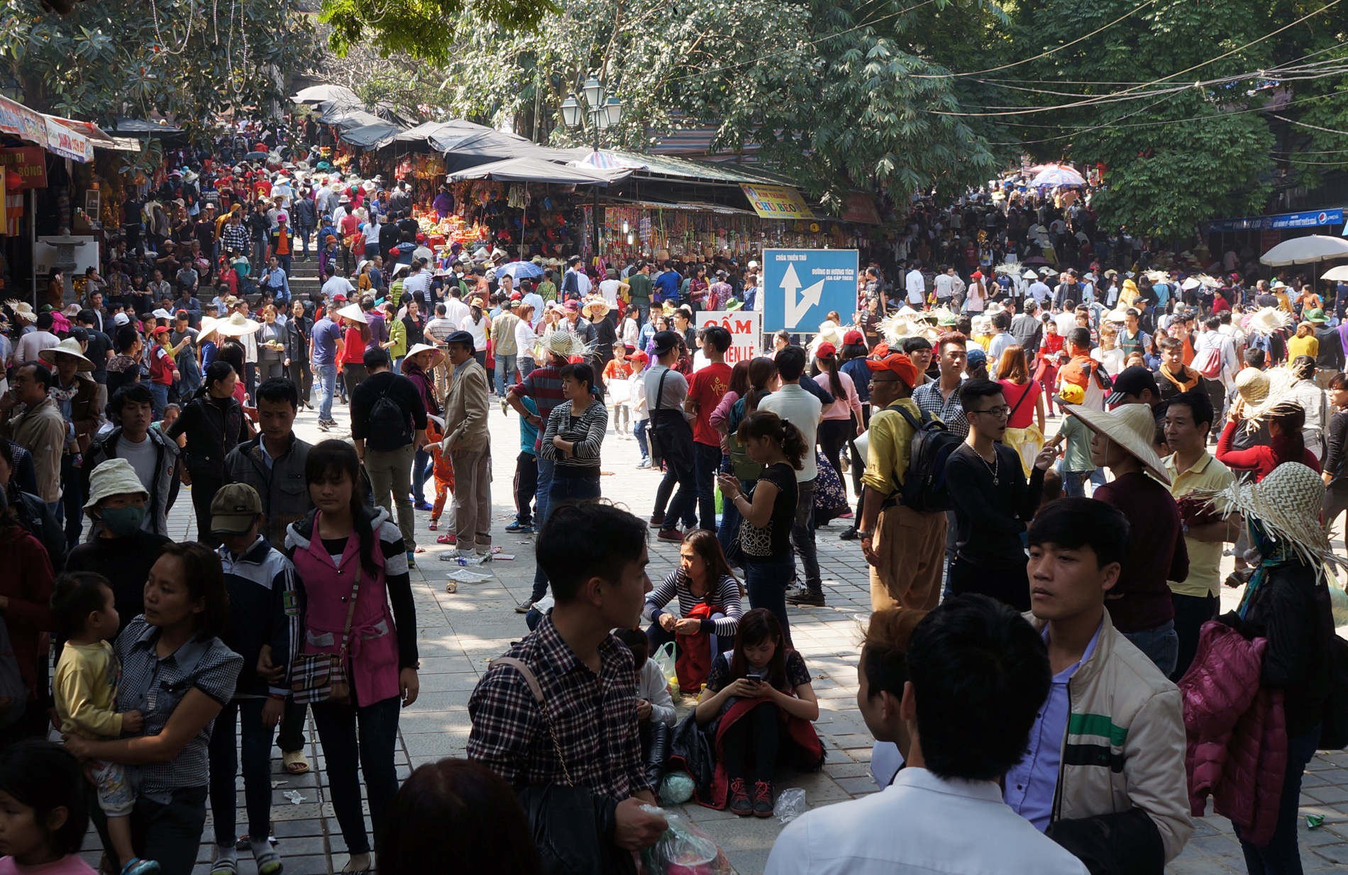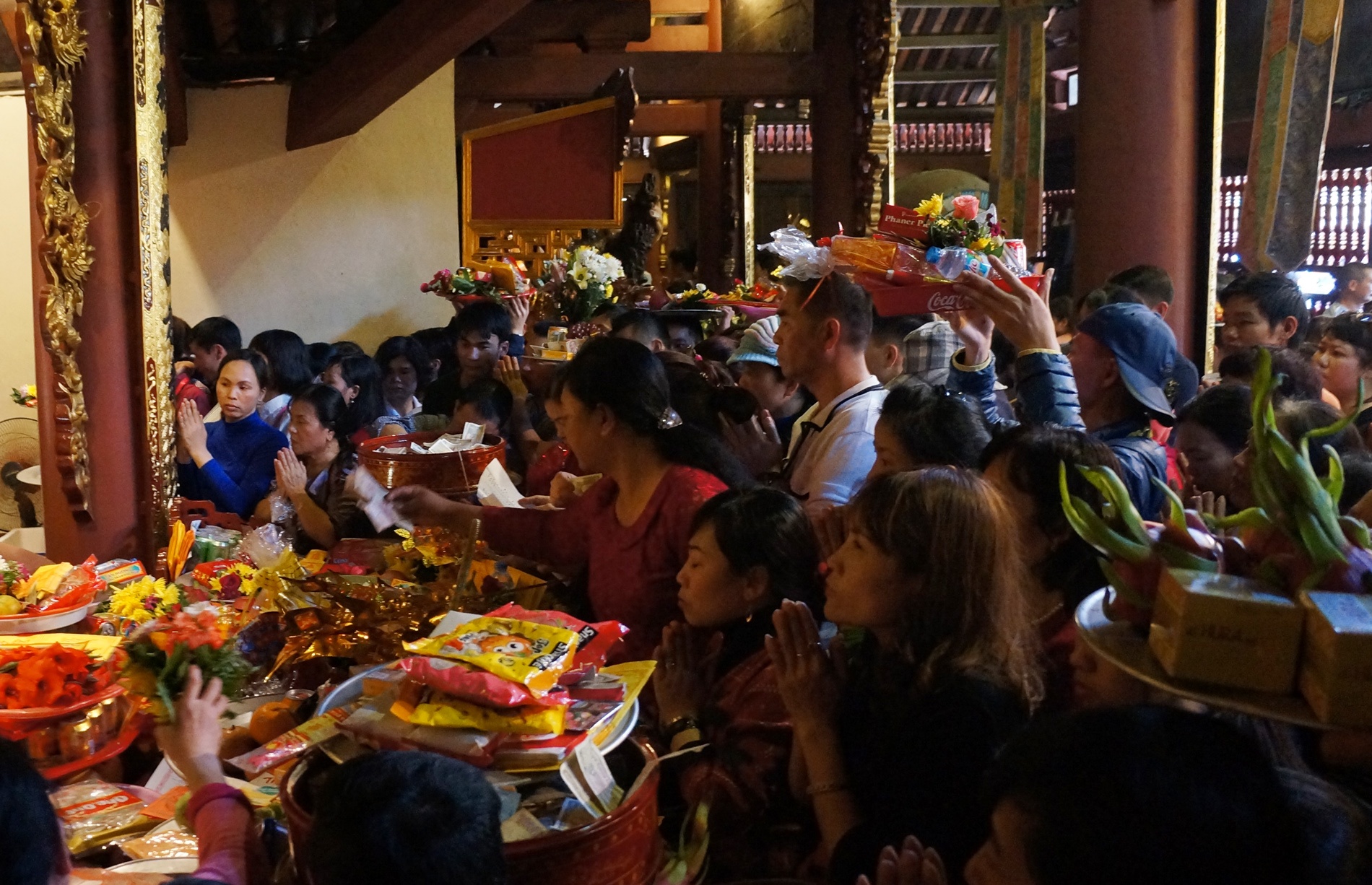 | Cửa vào chùa Thiên Trù ken đặc người. Du khách hành hương chỉ có thể di chuyển chậm. |