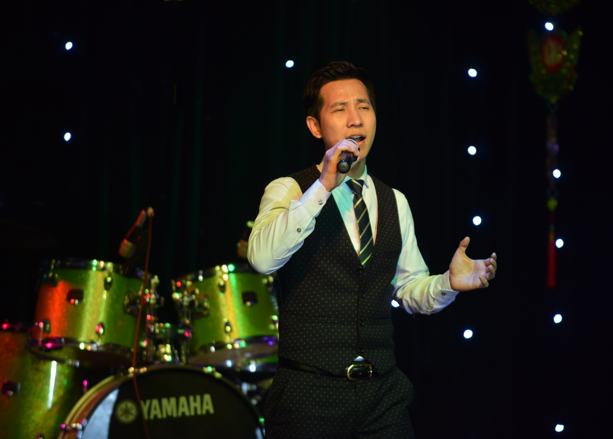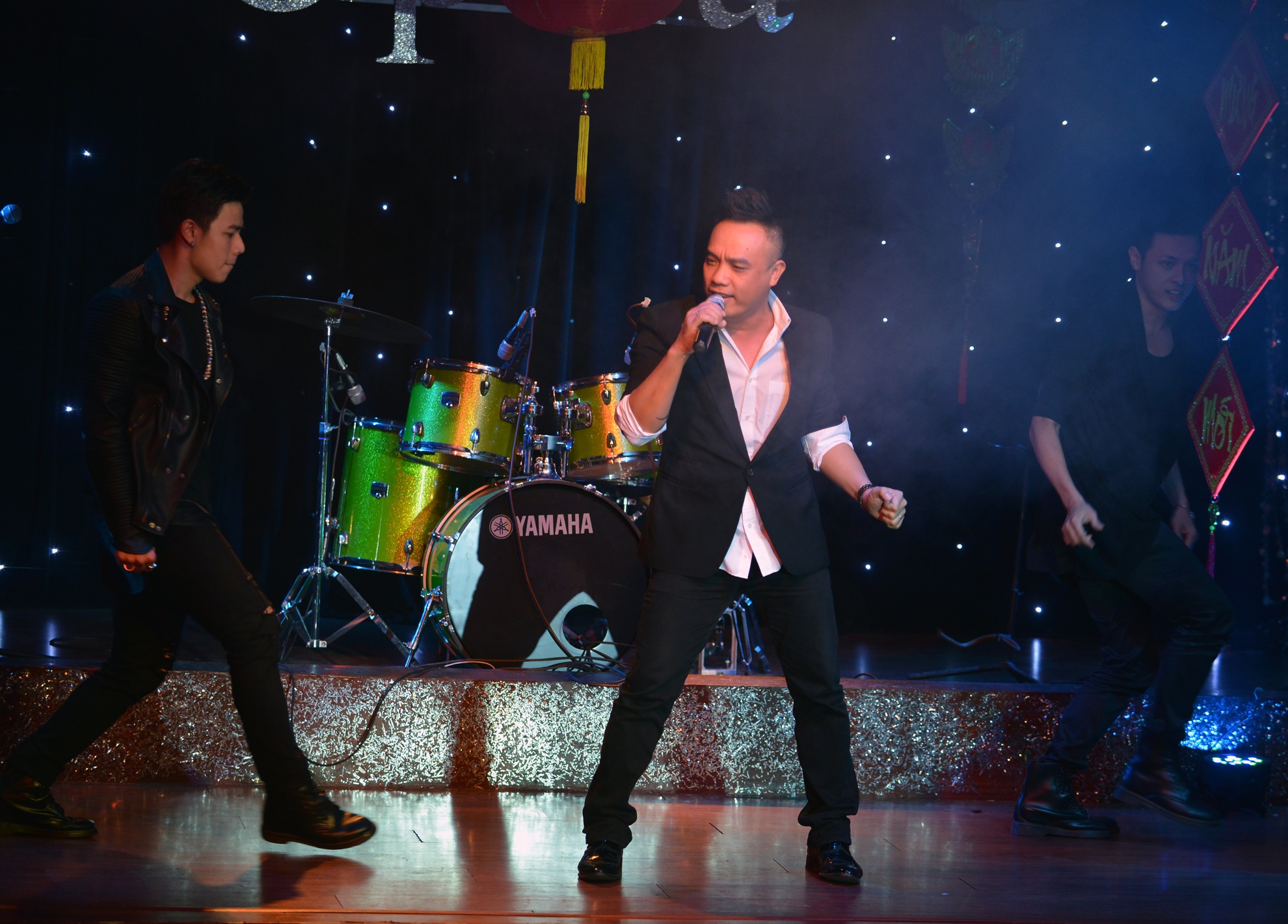 Dù phải lo cho hoạt động của hai đêm diễn, kết nối các nhà hảo tâm nhưng Tô Minh Thắng vẫn khá sung trong hai ca khúc nhạc dance sôi nổi.
