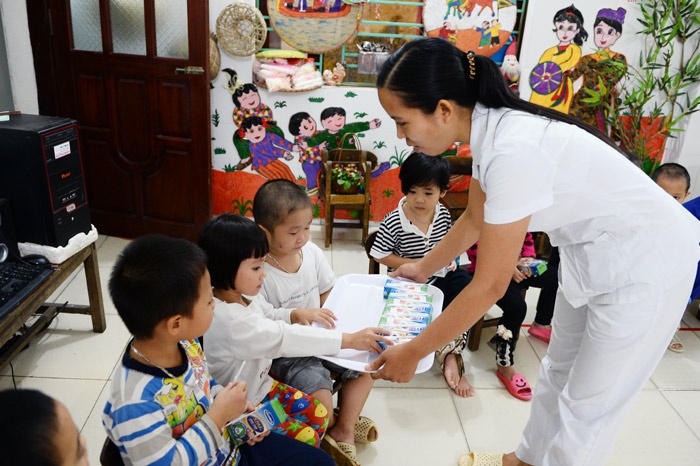 | Từ nay đến hết thời gian chương trình hàng ngày các em sẽ được cô giáo phát sữa uống tại lớp. |