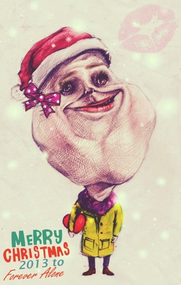 Rộ lên trào lưu các bạn nam, bạn nữ cô đơn đồng loạt thay ảnh đại diện Facebook là gương mặt cặp đôi nam nữ Forever Alone nổi tiếng trong bộ quần áo giáng sinh 2013.