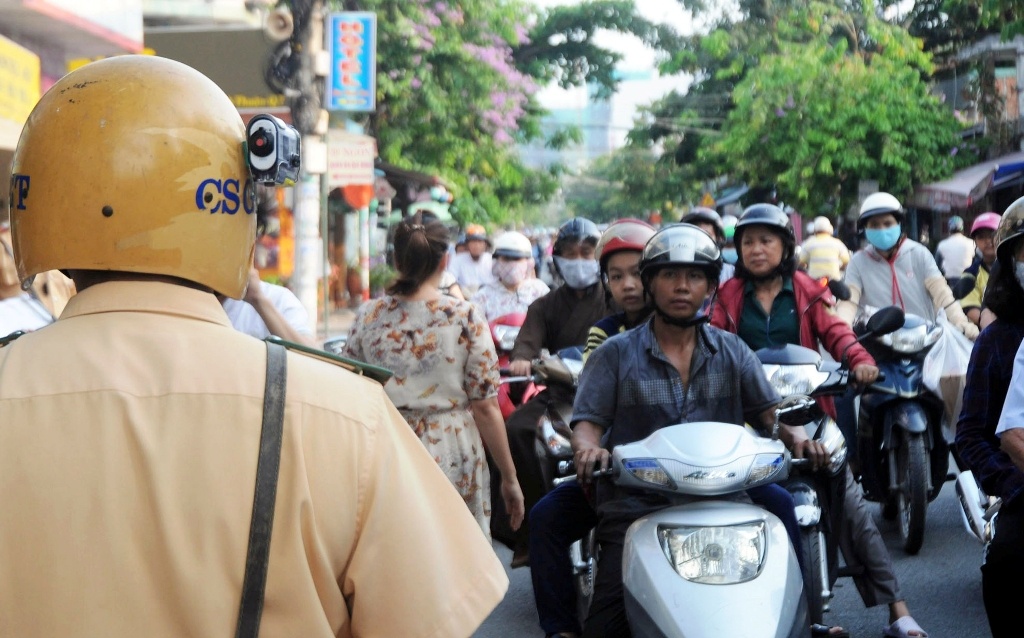 | Thời gian gần đây, hình ảnh CSGT quận 7, TP HCM với chiếc camera được gắn cố định lên mũ bảo hiểm (MBH) trong lúc tuần tra dần trở nên quen thuộc với người dân. Việc này được triển khai tại Đội CSGT quận 7 từ tháng 12/2014. Các camera được ví như “mắt thần”, giúp tổ tuần tra thực hiện tốt công việc. |