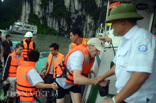| Phút bàn bạc đưa các du khách về bờ của lánh đạo tỉnh Quảng Ninh và Ban quản lý vịnh Hạ Long. |