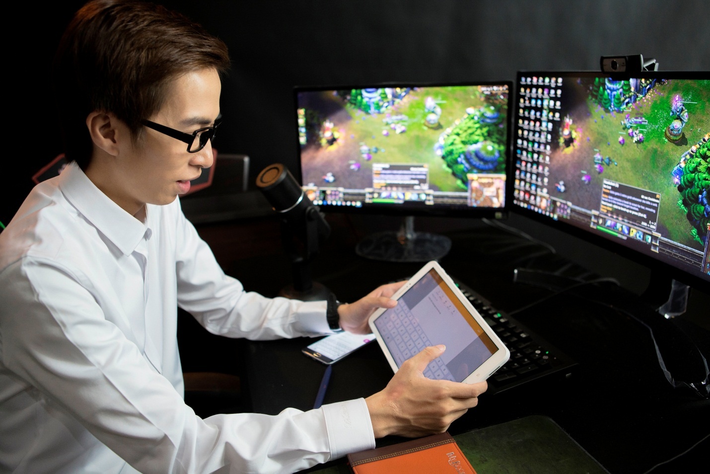 - Tôi đóng vai trò streamer và caster. Hiểu một cách đơn giản, streamer là người chia sẻ việc chơi game lên hệ thống phát sóng trực tuyến như TalkTV hay Youtube để nhiều người cùng xem. Còn Caster dịch nôm na là “người phù phép”. Tuy nhiên, từ bình luận viên (BLV) sẽ chính xác hơn. Theo đó, công việc này đòi hỏi bạn phải hết sức linh hoạt trong cách sử dụng từ ngữ để truyền tải đến người xem từng diễn biến nhỏ của trận đấu. Đồng thời, người nói phải giữ độ hài hước để tránh gây nhàm chán cho cộng đồng game thủ.