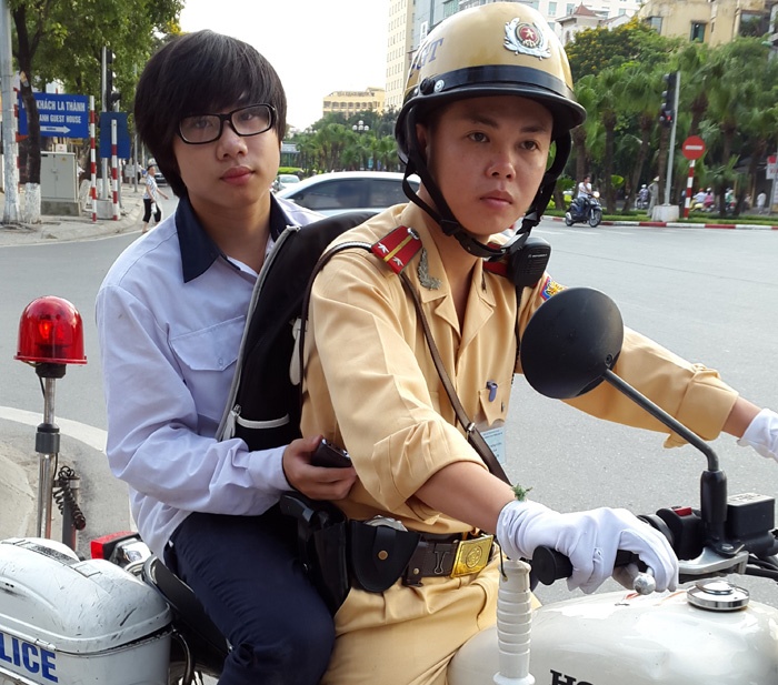 “Thấy Nam kêu đau, vẻ mặt lo lắng, nói lo muộn giờ thi, tôi gọi nhờ hai đồng nghiệp thuộc đội cảnh sát giao thông số 2 làm nhiệm vụ gần đó đến hỗ trợ đưa thí sinh đến trường thi bằng xe chuyên dụng” - Thượng úy Cường kể.