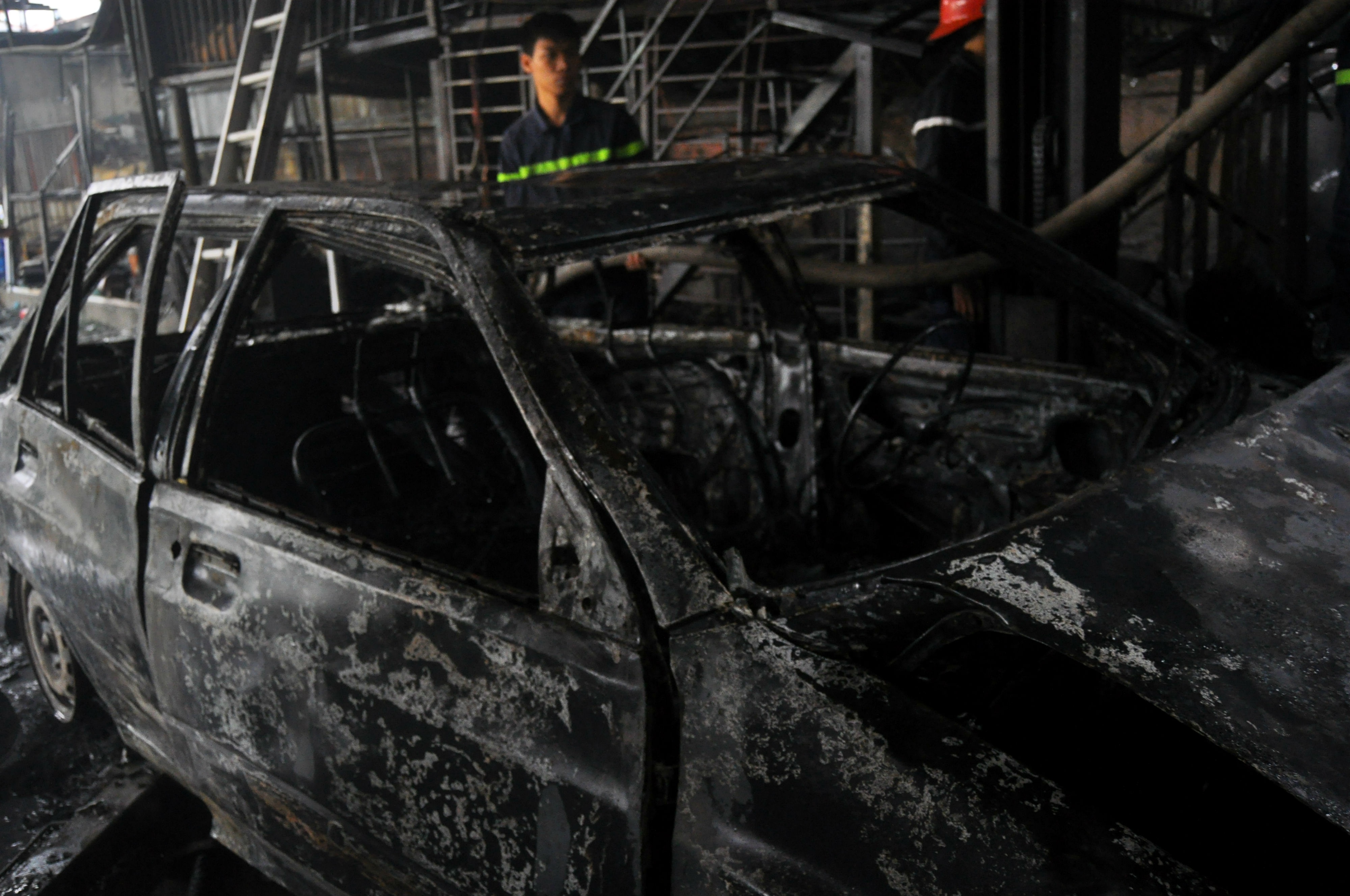 Vụ hỏa hoạn xảy ra tại gara ôtô Quang Văn (Hà Đông, Hà Nội) khiến toàn bộ phòng khách, gian bếp cửa hàng này và chiếc Kia bị thiêu rụi.