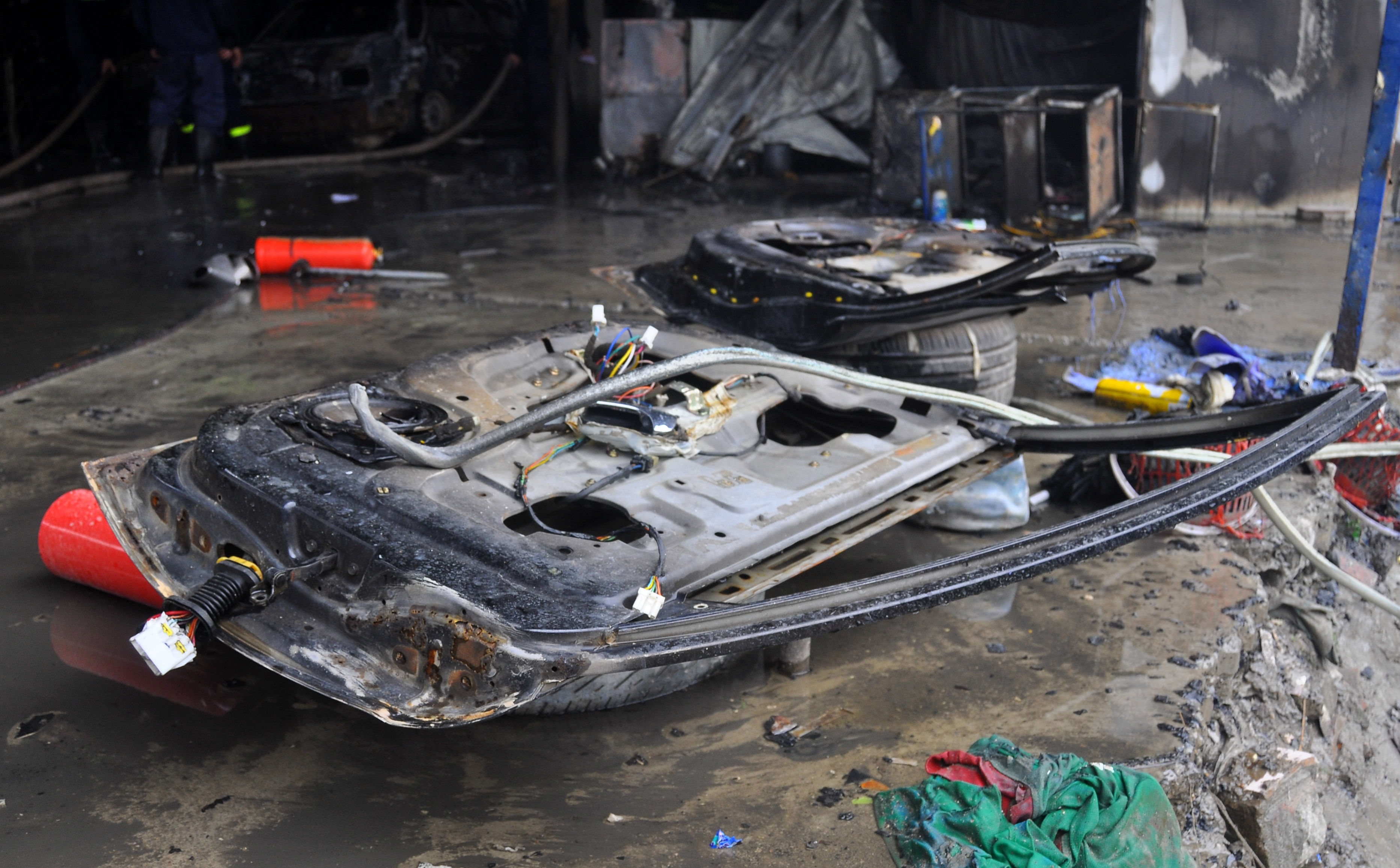15 phút sau, lửa bùng lên, lan sang văn phòng, gian bếp và chiếc Kia đang tu sửa giữa cửa hàng. Cột khói cao hàng chục mét bốc lên, trùm cả tòa chung cư cạnh đó.