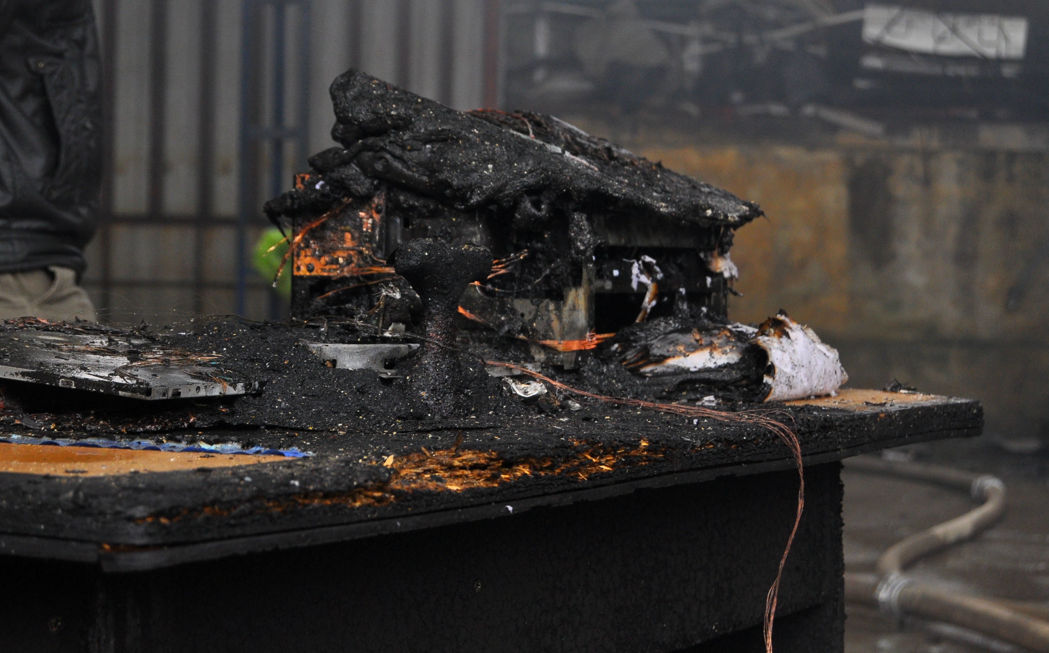 | Máy vi tính trong phòng khách bị thiêu rụi. |