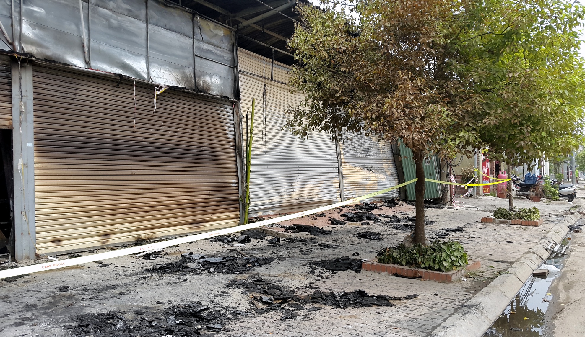 | Cách đó vài gian, một showroom xe sang đã rất may mắn khi lửa kịp thời được dập tắt, chưa lan sang. |