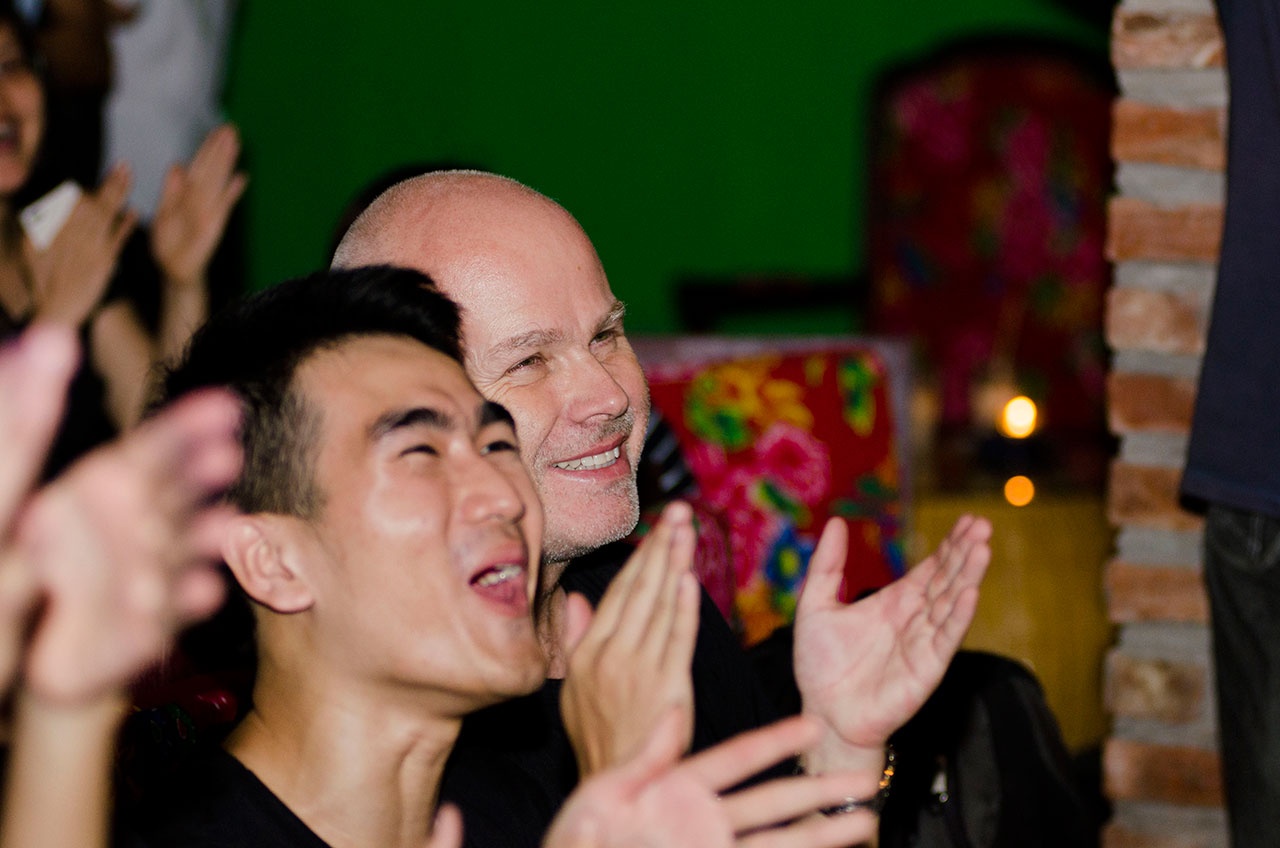 | Trong khi Thu Minh khuấy động bầu không khí bằng những câu đùa, lời hát..., ông xã Tây ở phía dưới cổ vũ cô nhiệt tình như một fan cuồng đích thực. Thu Minh từng tiết lộ cô quen chồng khi đi tập gym. "Kể từ ngày lấy chồng đến nay, tôi thấy mình đằm thắm, nữ tính và bớt đanh đá hơn. Năm nay, tôi không giấu mong muốn có con trai, vì muốn một bản copy như chồng, đặc biệt là những đức tính như sống có trách nhiệm, sự thẳng thắn, trung thực, nhân ái” – nữ ca sĩ hết lời ca ngợi ông xã. |
