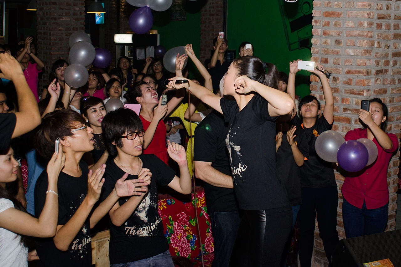 | Đây là lần đầu tiên Thu Minh tổ chức gặp gỡ người hâm mộ ở Hà Nội dù thường xuyên có mặt ở Thủ đô biểu diễn. Sự kiện này cũng là bữa tiệc sinh nhật muộn mà các fan dành cho cô. |