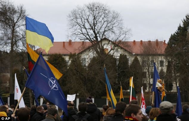 | Hàng ngàn người tham gia cuộc biểu tình ủng hộ Nga tại quảng trường Lenin. Trong khi đó, một nhóm người hát quốc ca Ukraina ở vị trí gần quảng trường. Ảnh: AFP. |