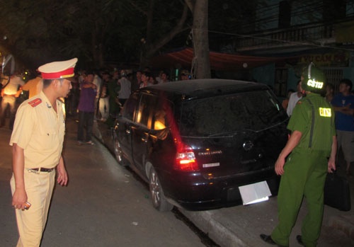 Theo ghi nhận tại hiện trường, vụ tai nạn để lại dấu vết kéo dài trên 200 m, chiếc xe ô tô bị bẹp dúm đầu, kính bị vỡ, nổ bóng khí.