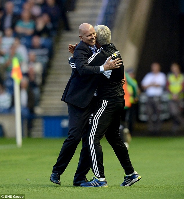 Niềm vui của HLV Henning Berg và trợ lý. Tuy nhiên, muốn tiến vào vòng bảng, các học trò của cựu cầu thủ M.U phải vượt qua vòng play-off.