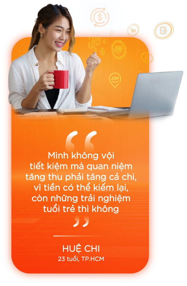 Với họ, mục tiêu tài chính về bản chất không phải tài khoản nhiều chữ số 0, mà là gia tăng trải nghiệm sống thỏa mãn chính mình. Cùng tinh thần này, Huệ Chi (23 tuổi, TP.HCM) chia sẻ: “Từ ngày đi làm, có thu nhập ổn định, mình tự cho phép bản thân chi tiêu thoải mái hơn thời sinh viên. Mình không tiết kiệm vội mà quan niệm tăng thu phải tăng cả chi, vì tiền có thể kiếm lại, còn những trải nghiệm tuổi trẻ thì không”.