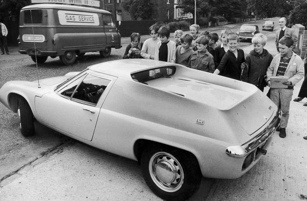 | 1/81969: Các Manucian trẻ tuổi thích thú chiêm ngưỡng chiếc xe Lotus Europa màu vàng của thần tượng bên ngoài trung tâm huấn luyện Manchester Utd. |