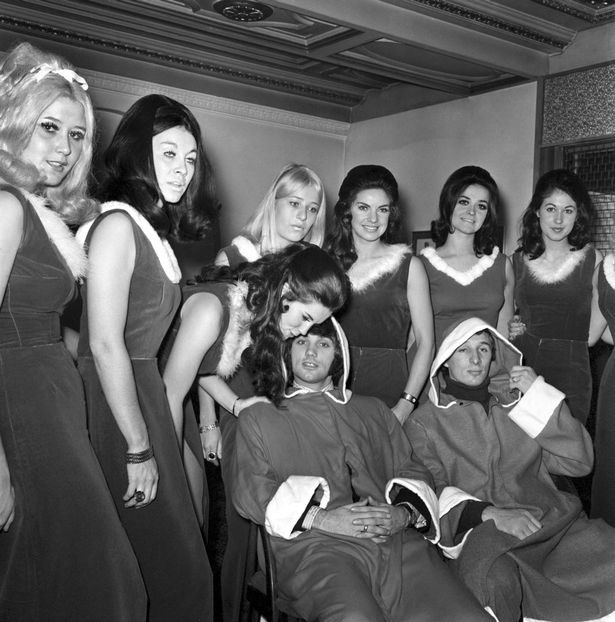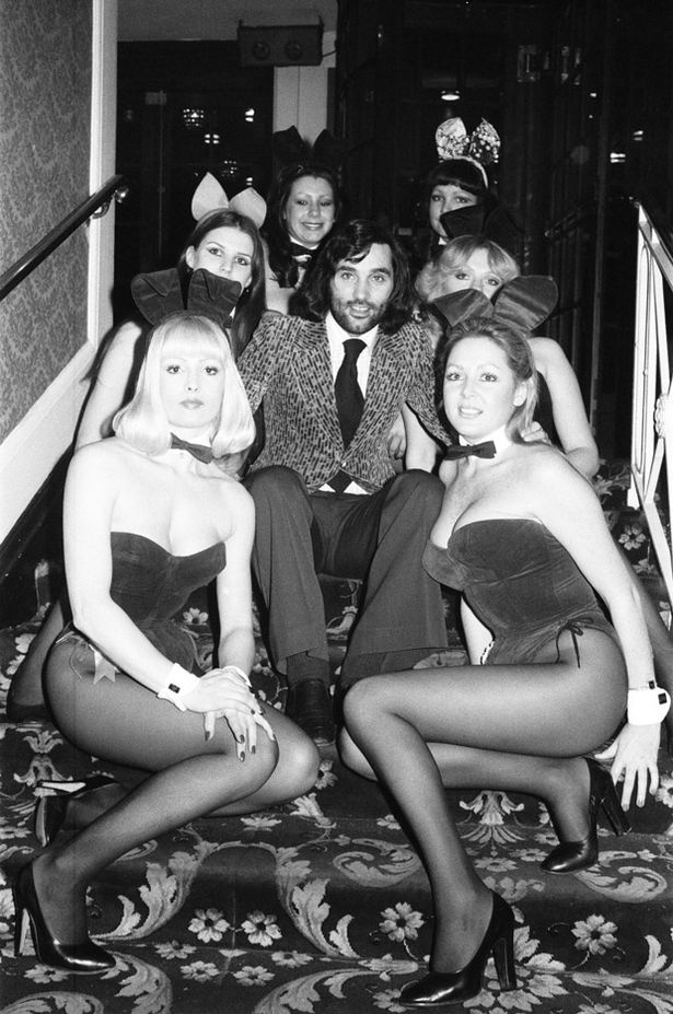 | 5/2/1977: "Sát thủ" một thời người Bắc Ireland vui vẻ bên dàn người mẫu Playboy tại khách sạn sang trọng Grosvenor House, London. |