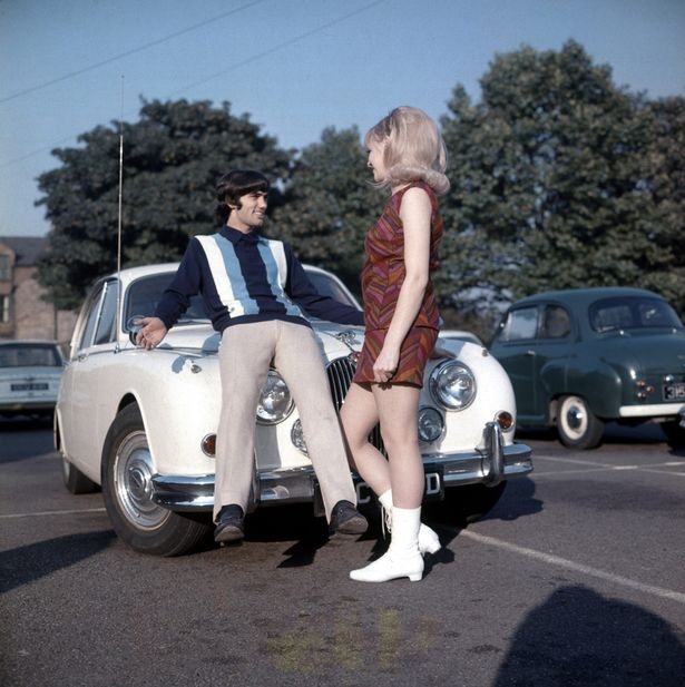 | 1/10/1966: Bestie "khoe" một chiếc xe mới khác với hoa hậu Anh, Jennifer Lowe. |