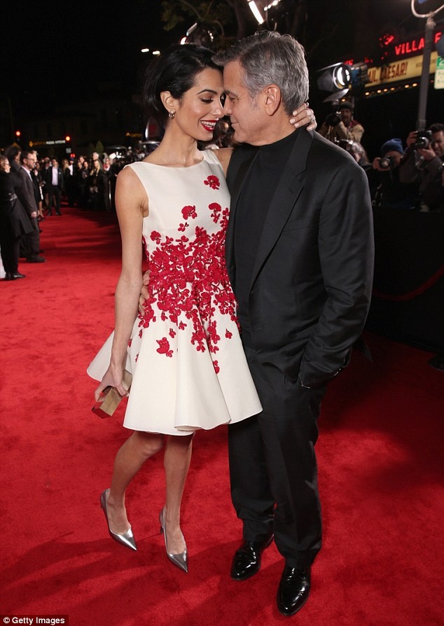 George Clooney tình tứ với bà xã Amal trên thảm đỏ. |